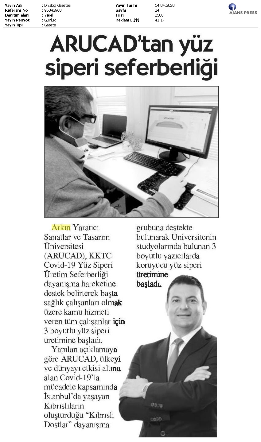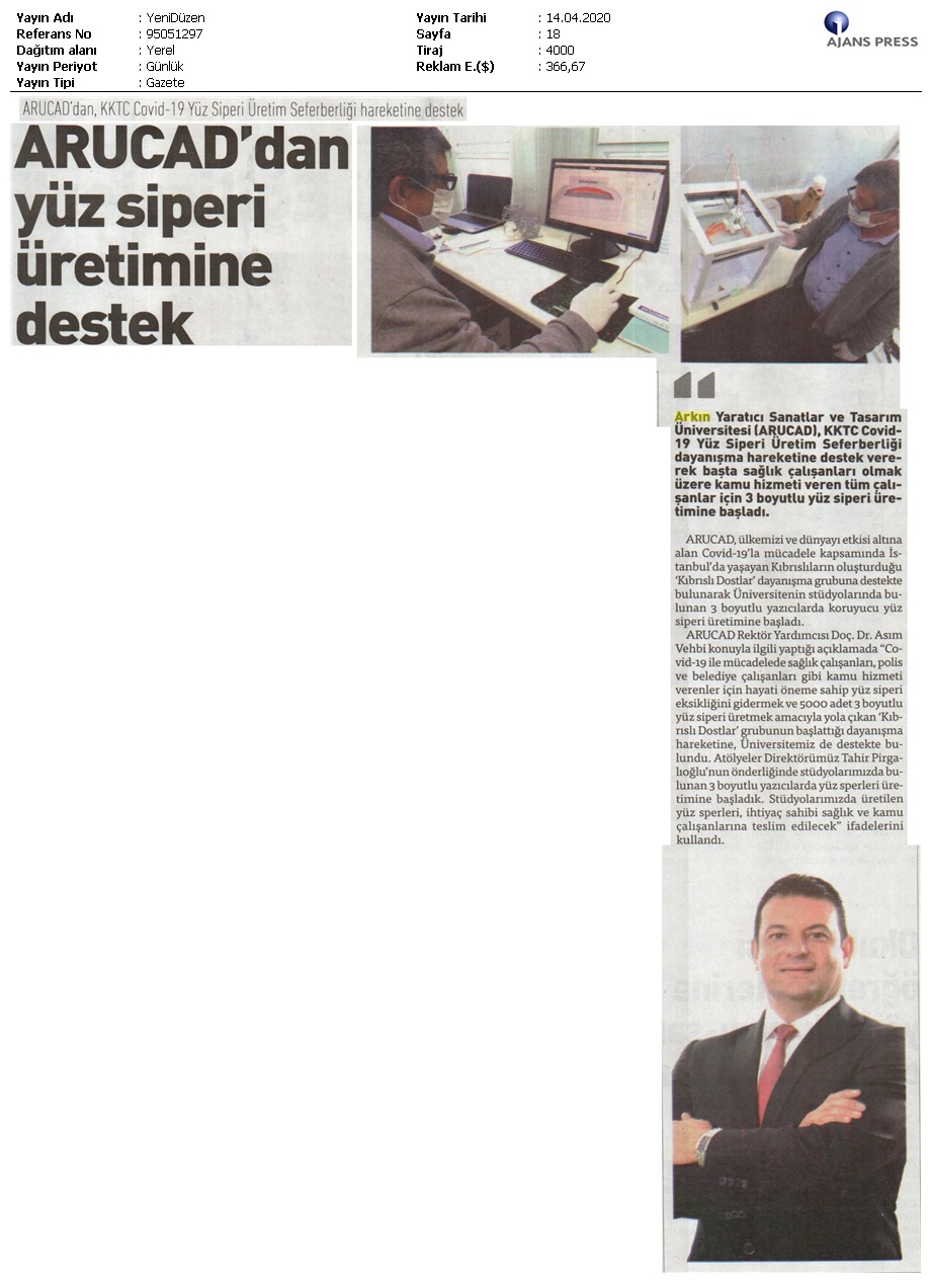 ARUCAD’dan Yüz Siperliği Üretimine Destek