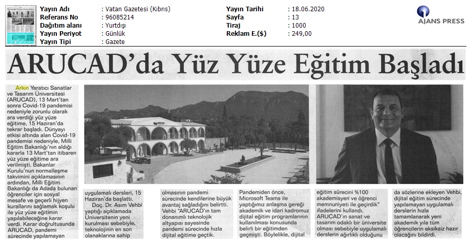 ARUCAD’da Yüzyüze Eğitim Başladı