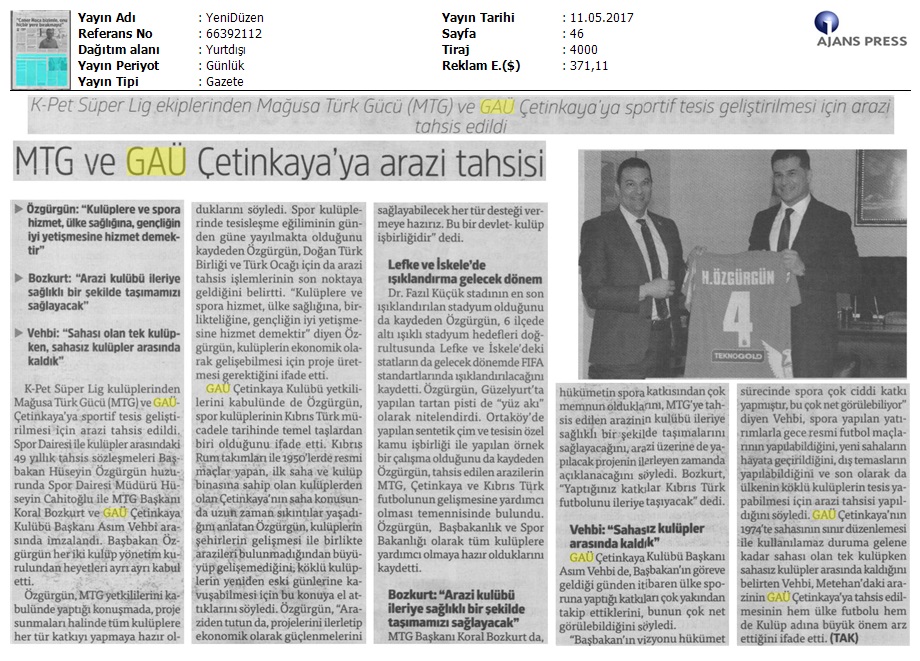 GAÜ Çetinkaya’ya sportif tesis geliştirilmesi için arazi tahsisi