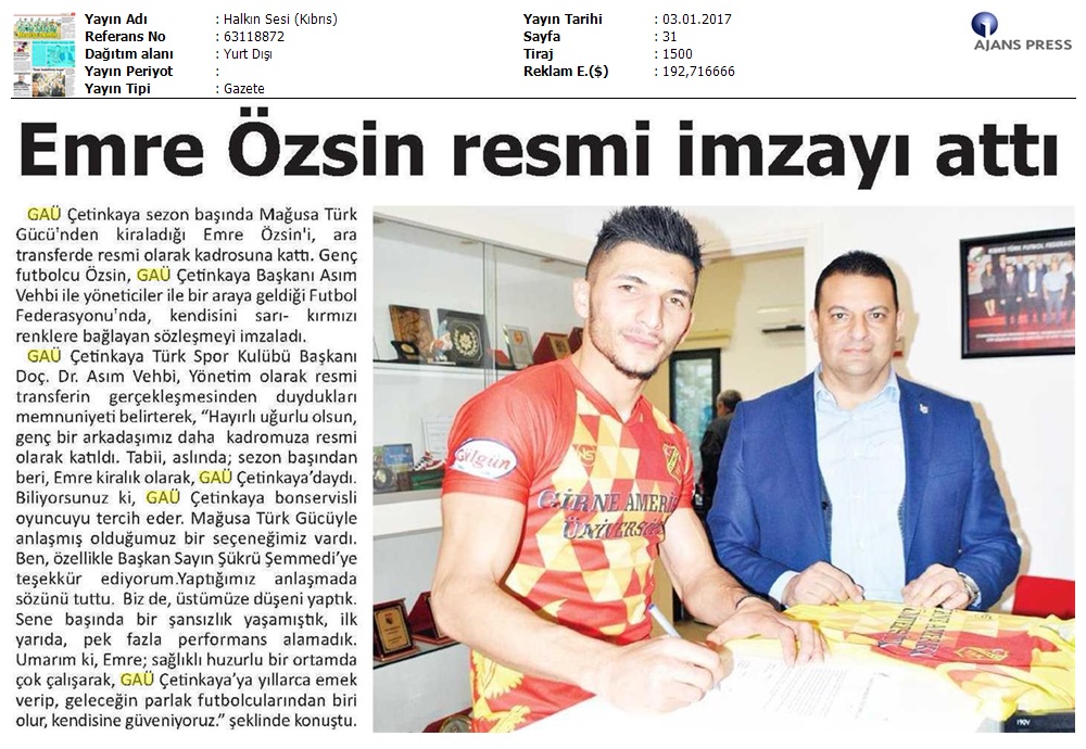 Emre Özsin’in GAÜ Çetinkaya’ya transferi tamamlandı