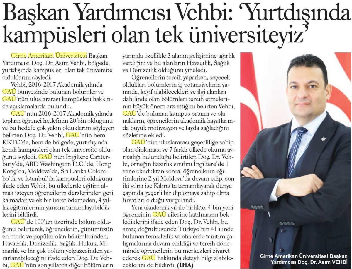 Doç. Dr. Asım Vehbi, 2016-2017 Akademik Yılı Hedeflerini Anlattı