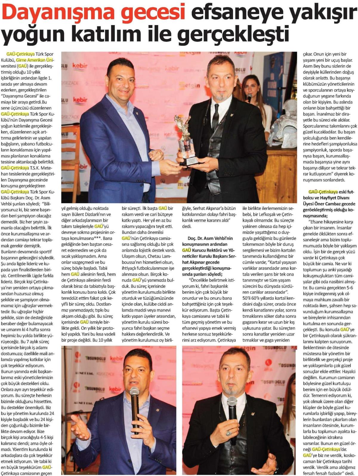 GAÜ Çetinkaya TSK’da Vehbi Dönemi Devam Ediyor