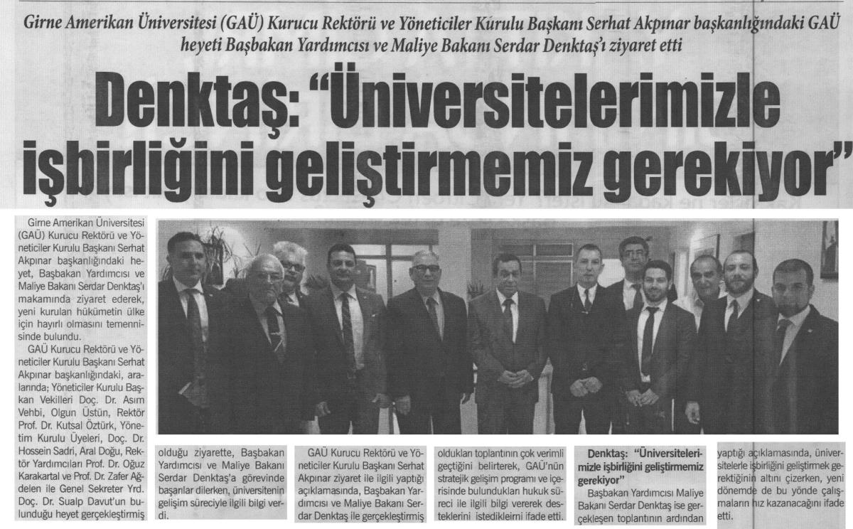 GAÜ Heyeti Başbakan Yardımcısı ve Maliye Bakanı Serdar Denktaş’ı Ziyaret Etti