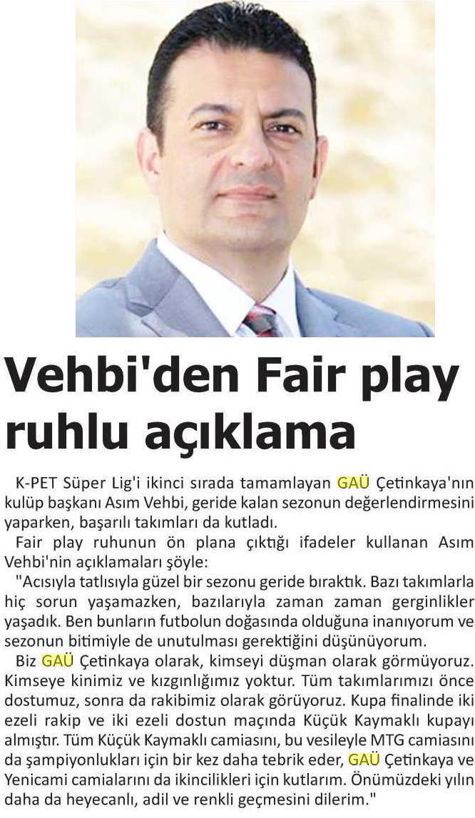 Asim Vehbi’den Fair Play Ruhlu Açıklama