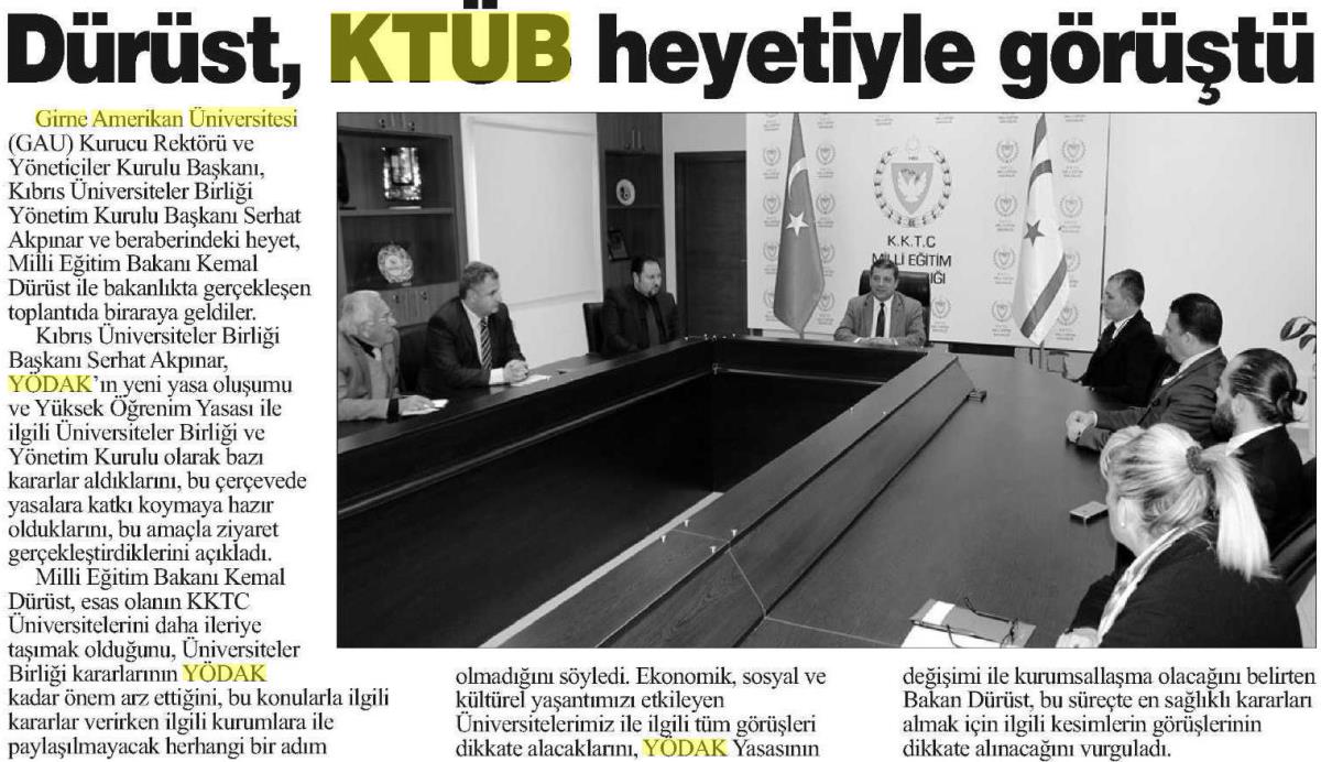 Milli Eğitim Bakanı Kemal Dürüst KÜB Heyeti İle Görüştü