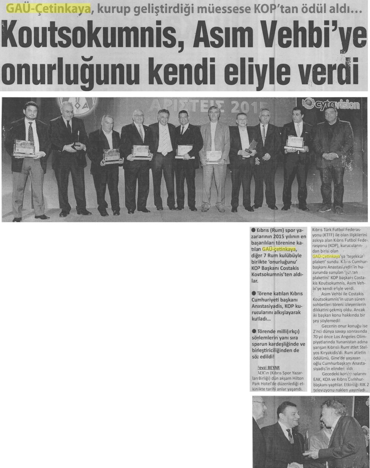 GAÜ Çetinkaya Türk Spor Kulübü’ne KOP’tan Ödül