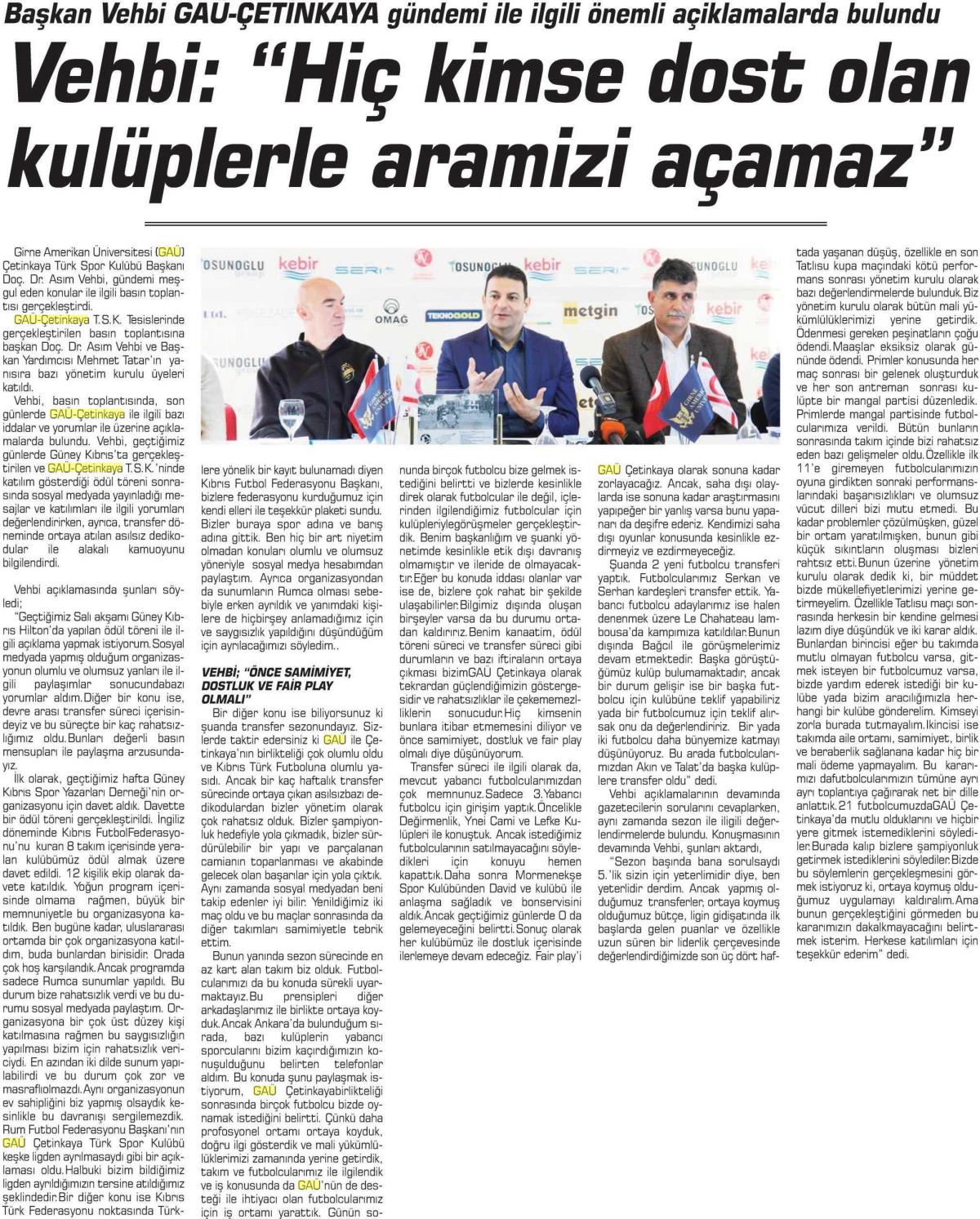 GAÜ Çetinkaya Başkanı Asım Vehbi Basına Açıklamalarda Bulundu