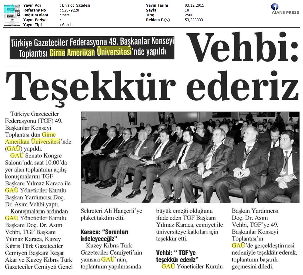 GAÜ Çetinkaya Başkanı Asım Vehbi Basınla Biraraya Geldi