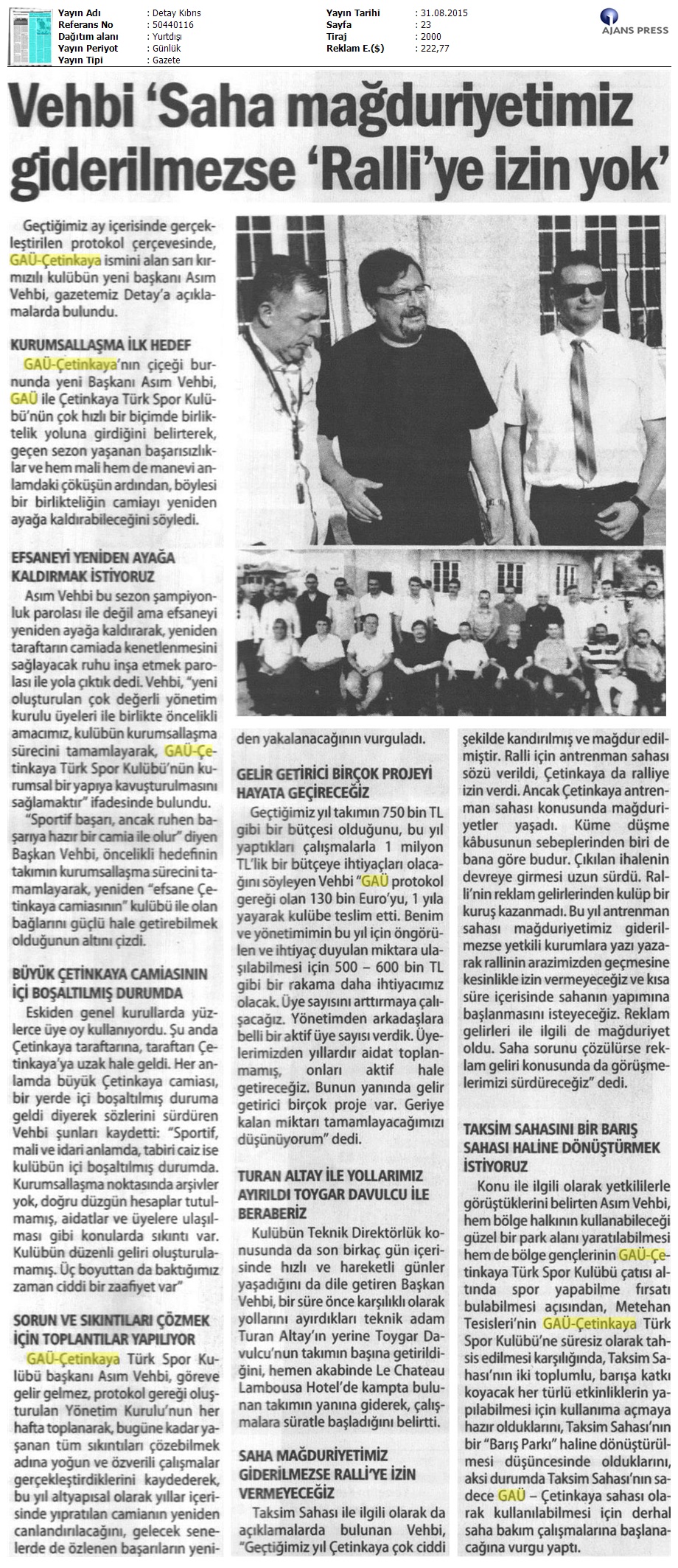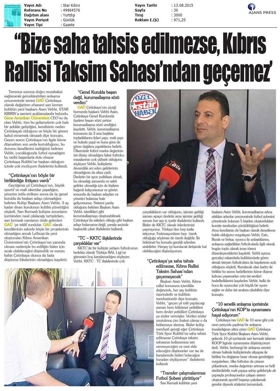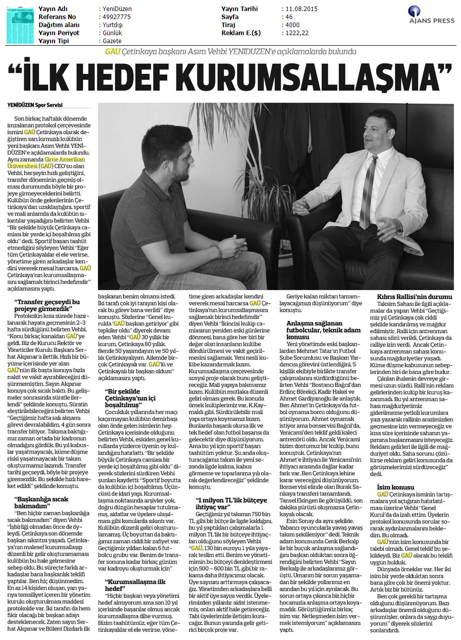 GAÜ Çetinkaya Başkanı Asım Vehbi Detay Gazetesi’ne Açıklamalarda Bulundu