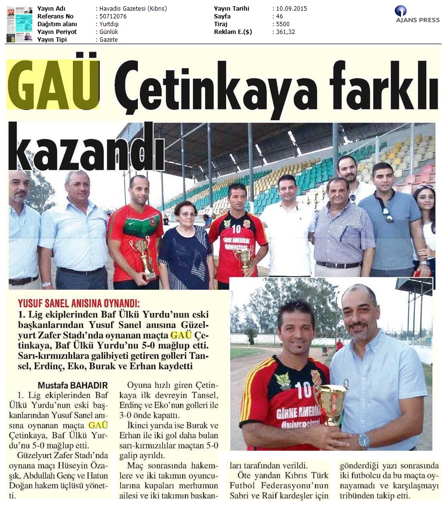 Anı Maçı GAÜ Çetinkaya’nın