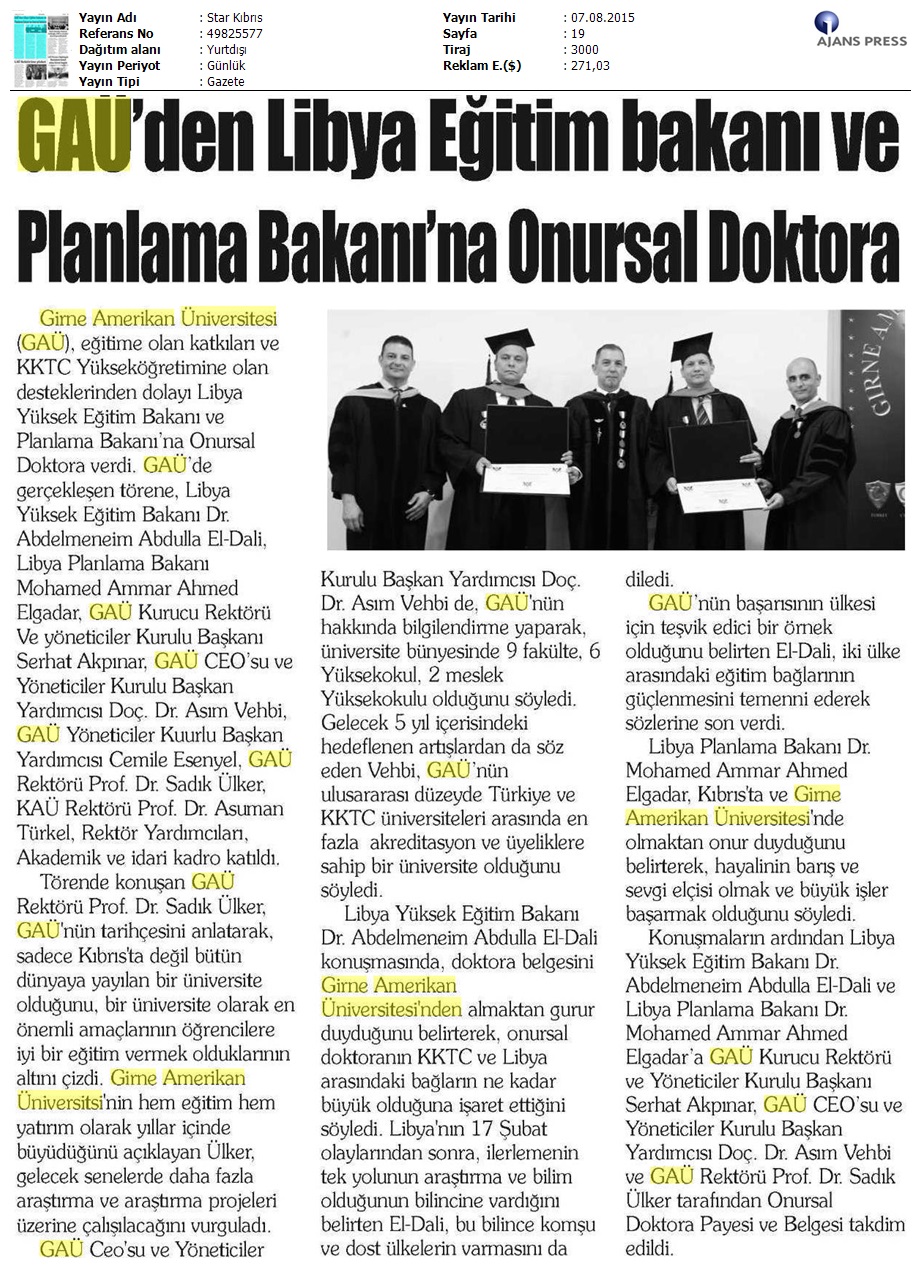 GAÜ’den Libya Eğitim Bakanı ve Planlama Bakanı’na Onursal Doktora