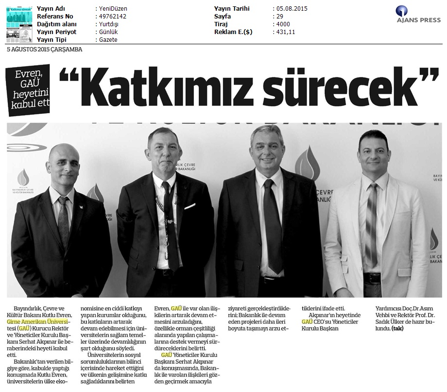 Bayındırlık, Çevre ve Kültür Bakanı Kutlu Evren GAÜ Heyetini Kabul Etti
