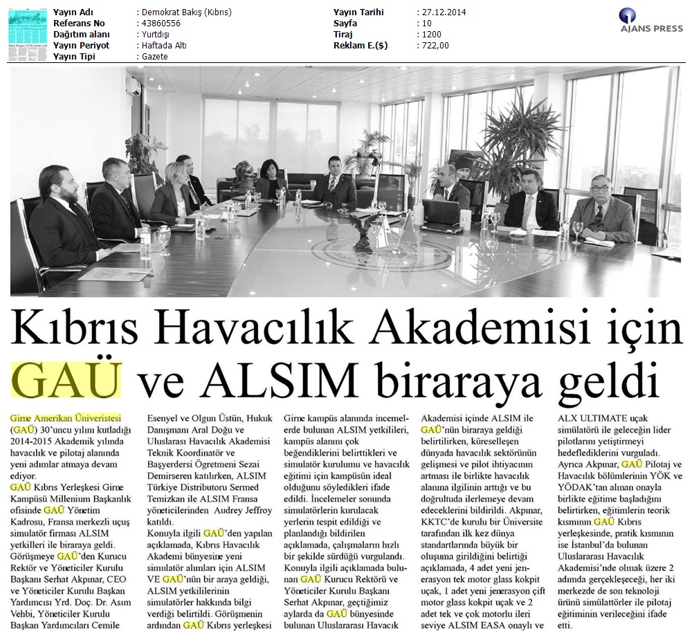Kıbrıs Havacılık Akademisi İçin GAÜ ve ALSIM Biraraya Geldi