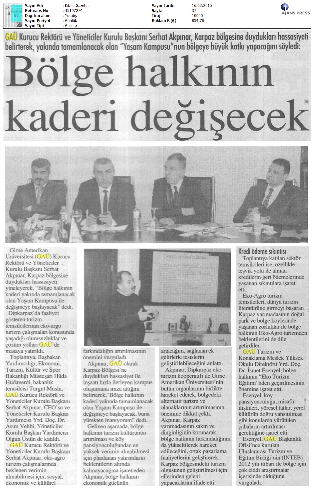 EKO-ARGO Turizm GAÜ’de Masaya Yatırıldı