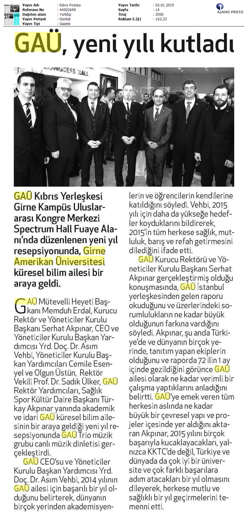 GAÜ Yeni Yılı Kutladı