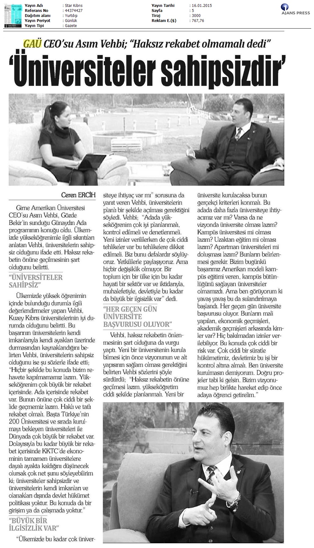 GAÜ CEO’su Asım Vehbi Günaydın Ada Programına Konuk Oldu