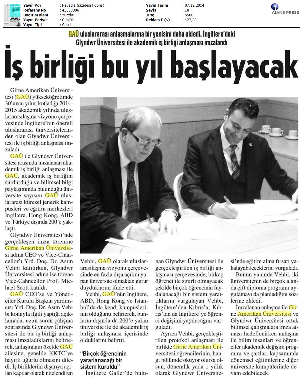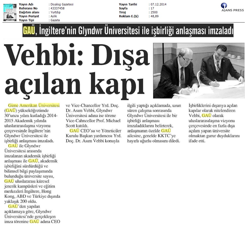 GAÜ İngiltere Glyndwr Üniversitesi ile İşbirliği Yaptı