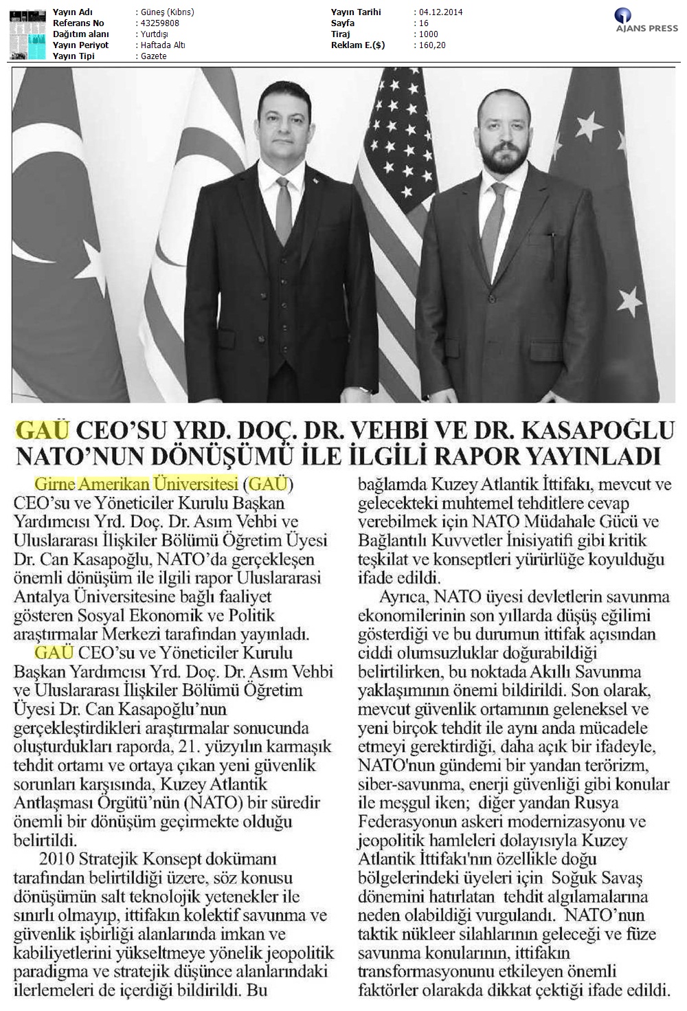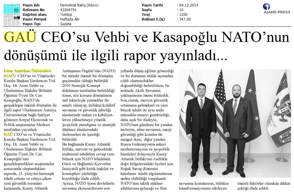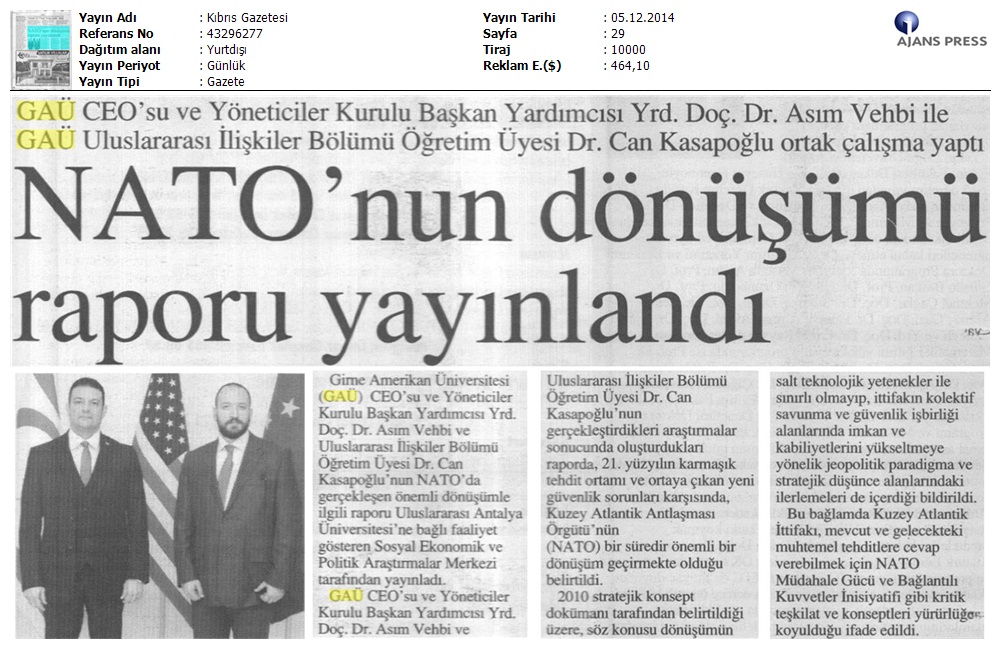GAÜ CEO’su Yrd. Doç. Dr. Asım Vehbi ve Öğretim Üyesi Dr. Can Kasapoğlu NATO’nun Dönüşümü ile İlgili Rapor Yayınladı