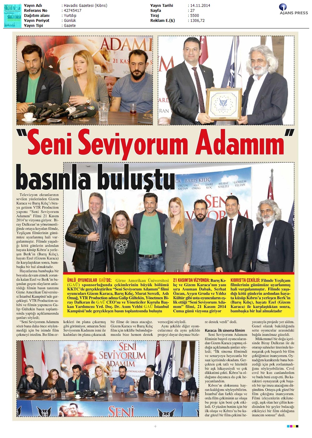 “Seni Seviyorum Adamım” Filmi Basınla Buluştu