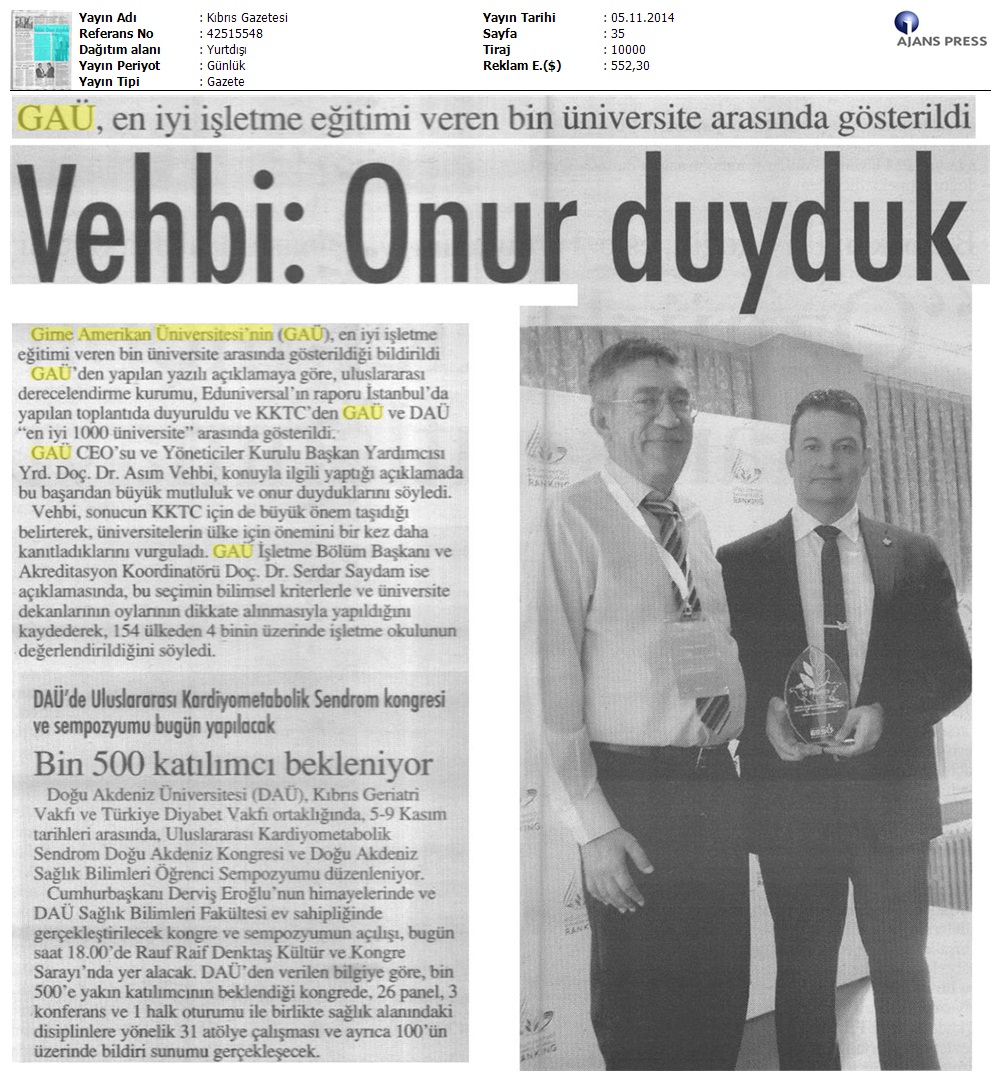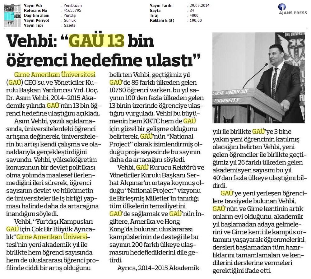 GAÜ CEO’su Yrd. Doç. Dr. Asım Vehbi’den Açıklama