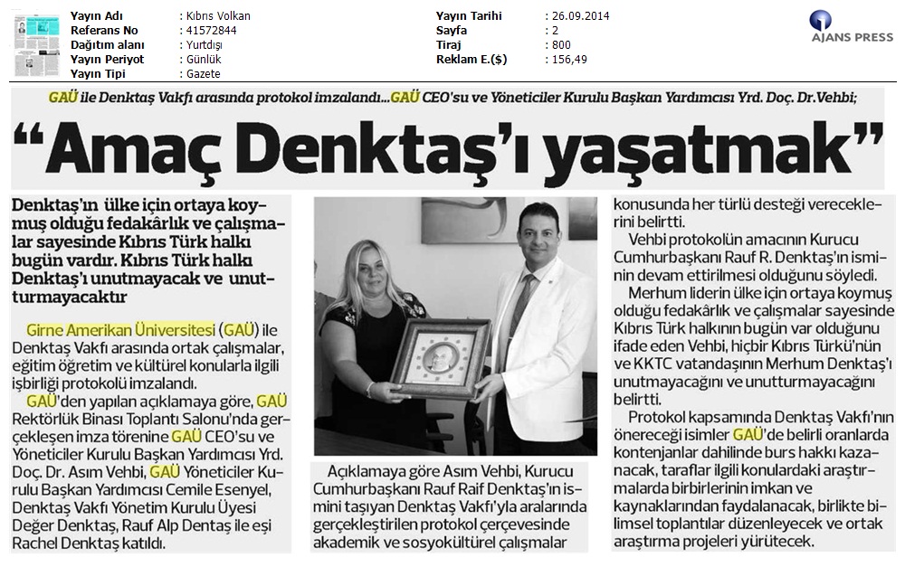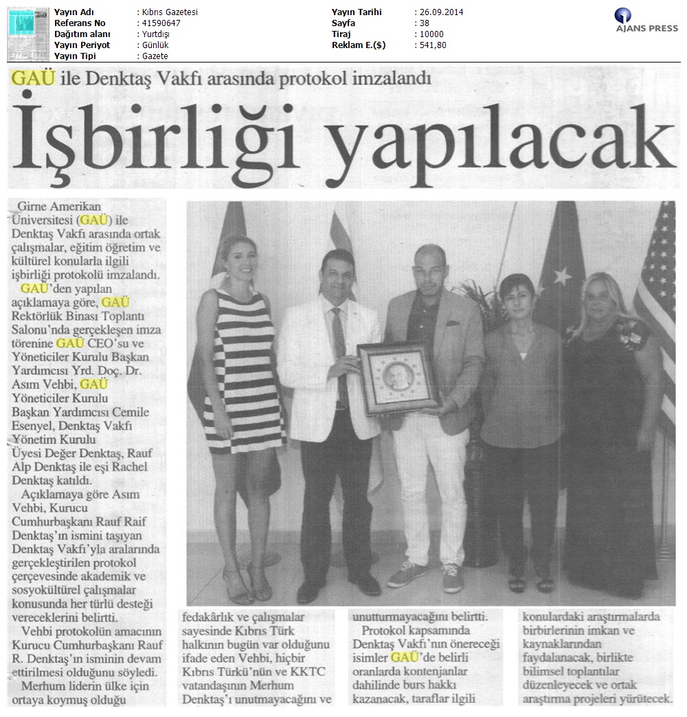 GAÜ İle Denktaş Vakfı Arasında İşbirliği Protokolü İmzalandı