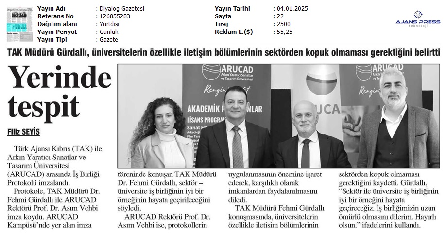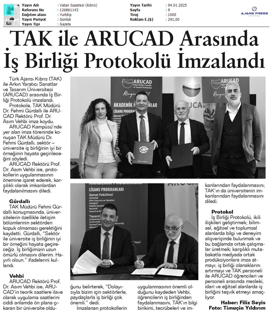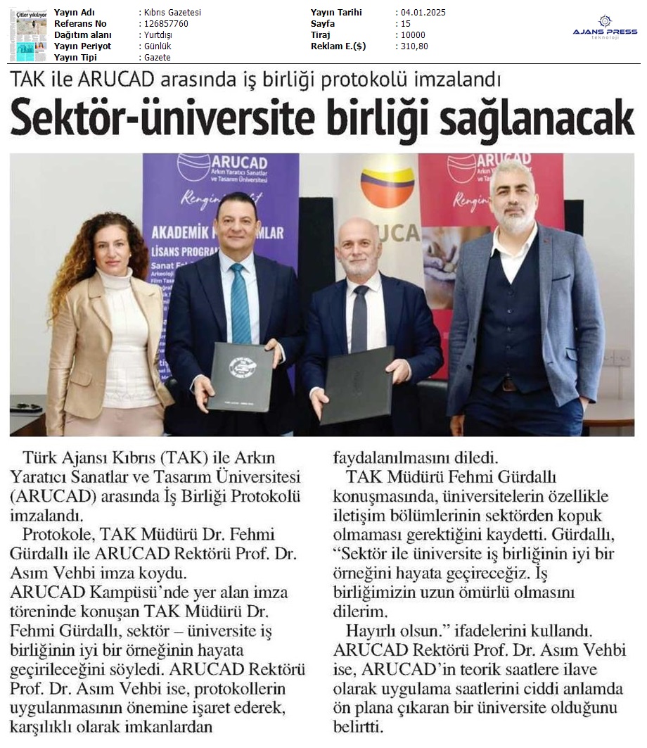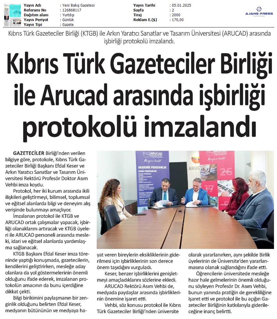 KIBRIS TÜRK GAZETECİLER BİRLİĞİ İLE ARUCAD ARASINDA İŞBİRLİĞİ PROTOKOLÜ İMZALANDI