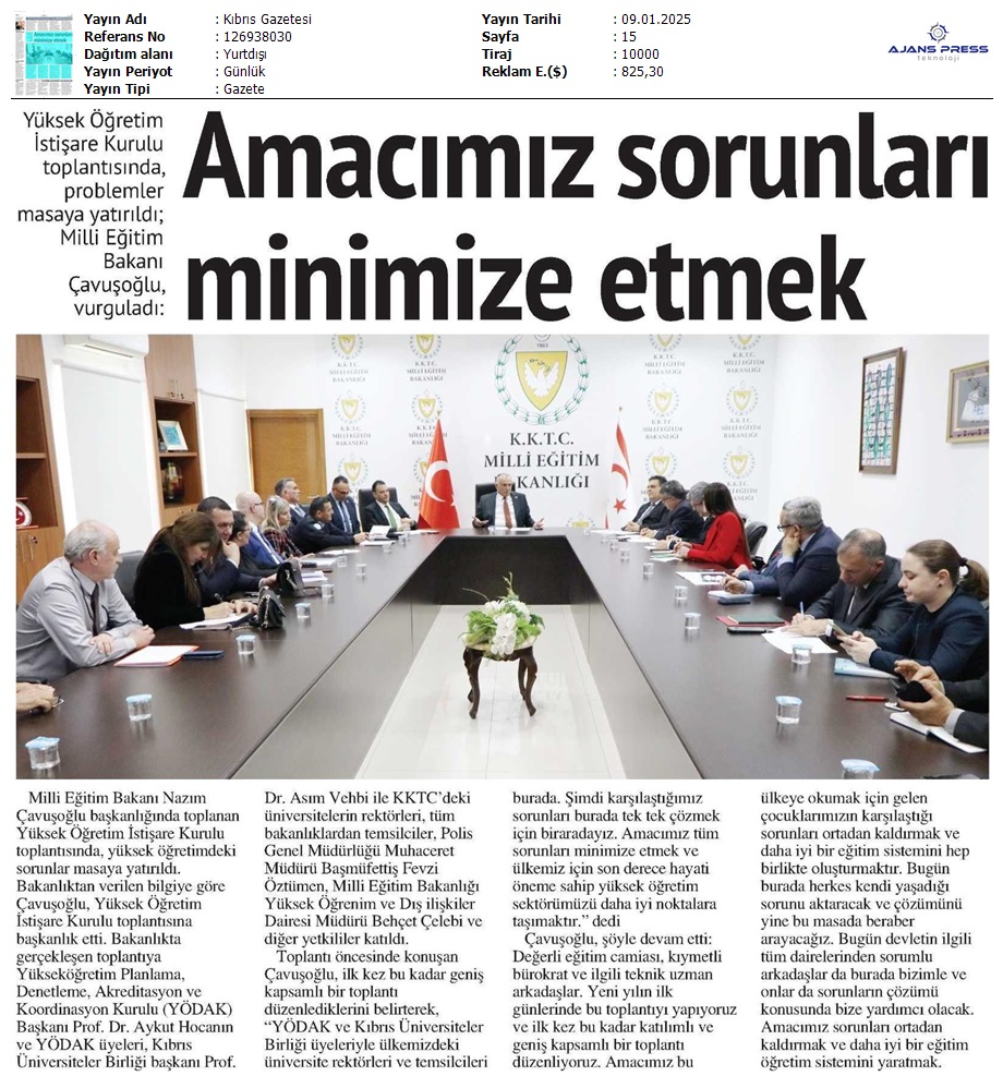 Yüksek Öğretim İstişare Kurulu Toplantısı Yapıldı