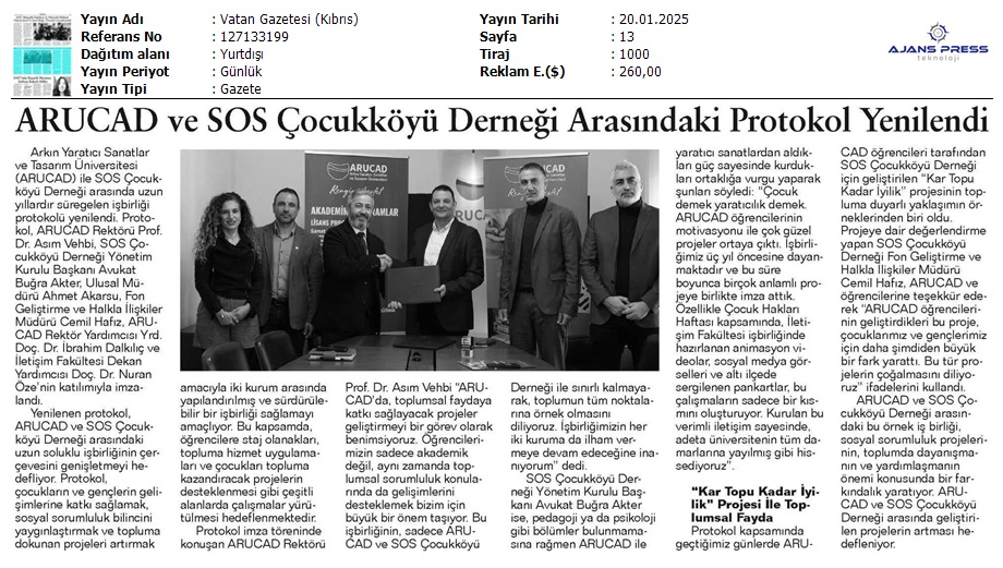 ARUCAD ile SOS Çocukköyü Derneği Arasındaki Protokol Yenilendi