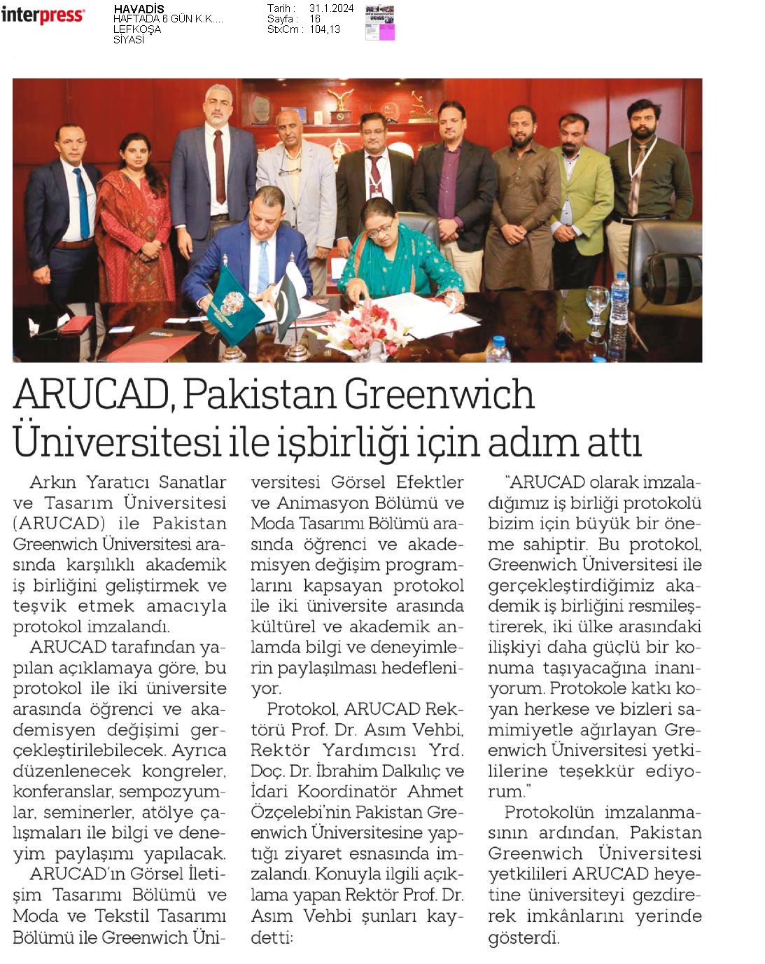 ARUCAD ve Pakistan Greenwich Üniversitesi Arasında İşbirliği Protokolü İmzalandı