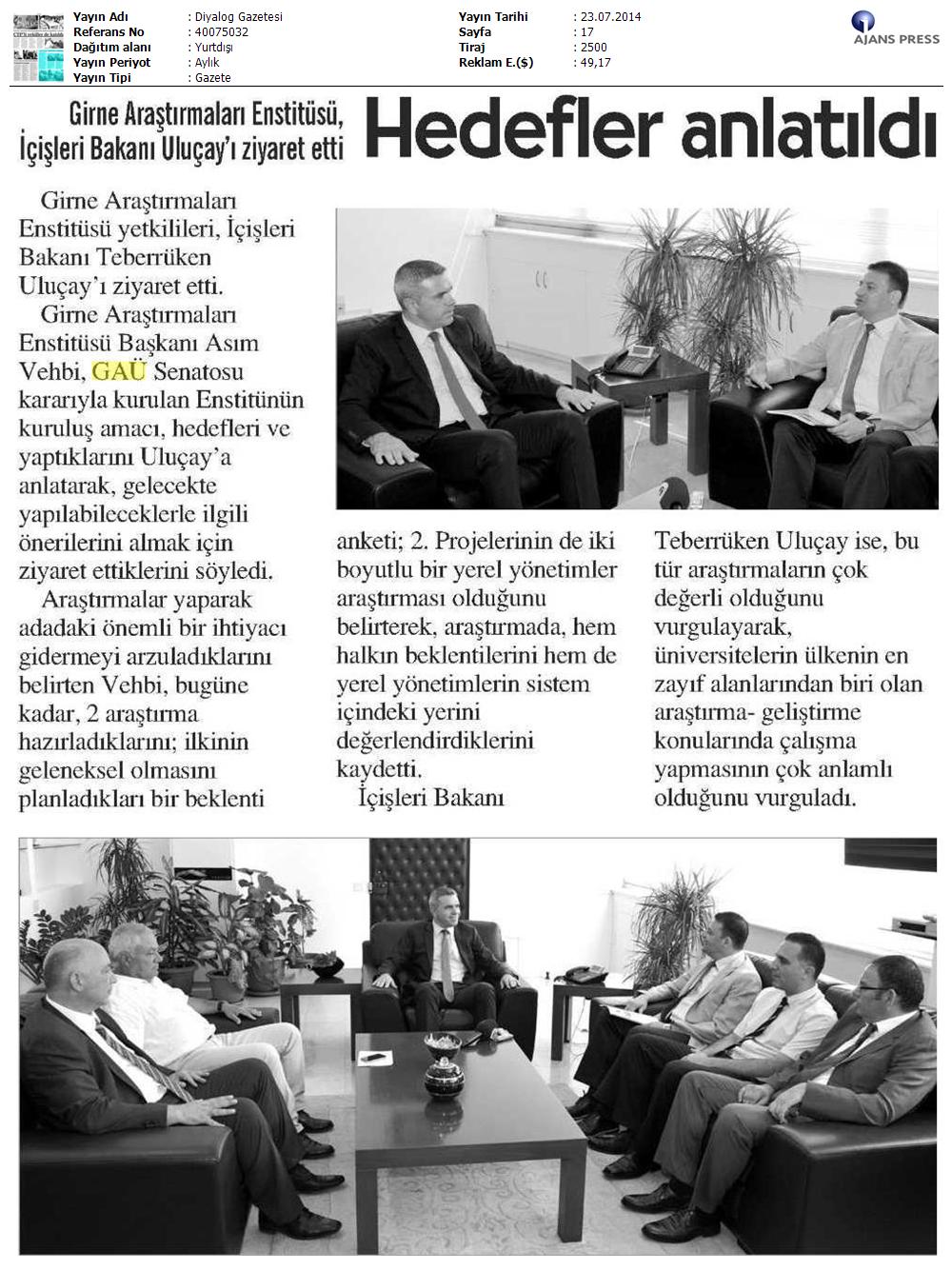 Girne Araştırma Enstitüsü İçişleri Bakanı’nı Ziyaret Etti