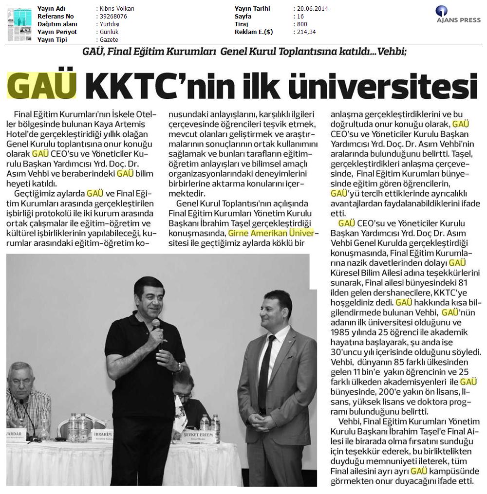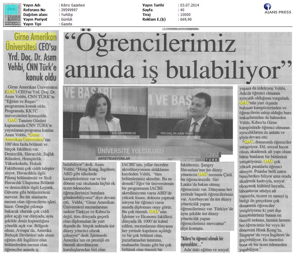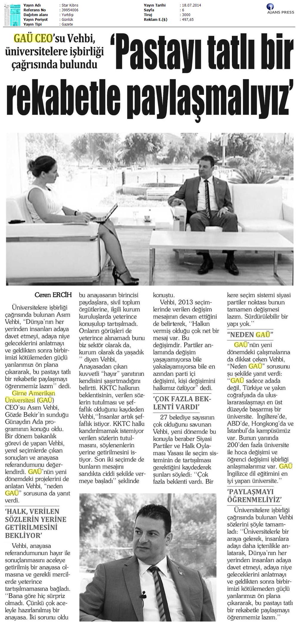 GAÜ CEO’su Yrd. Doç. Dr. Asım Vehbi Star Kıbrıs Gazetesi’ne Açıklamalarda Bulundu