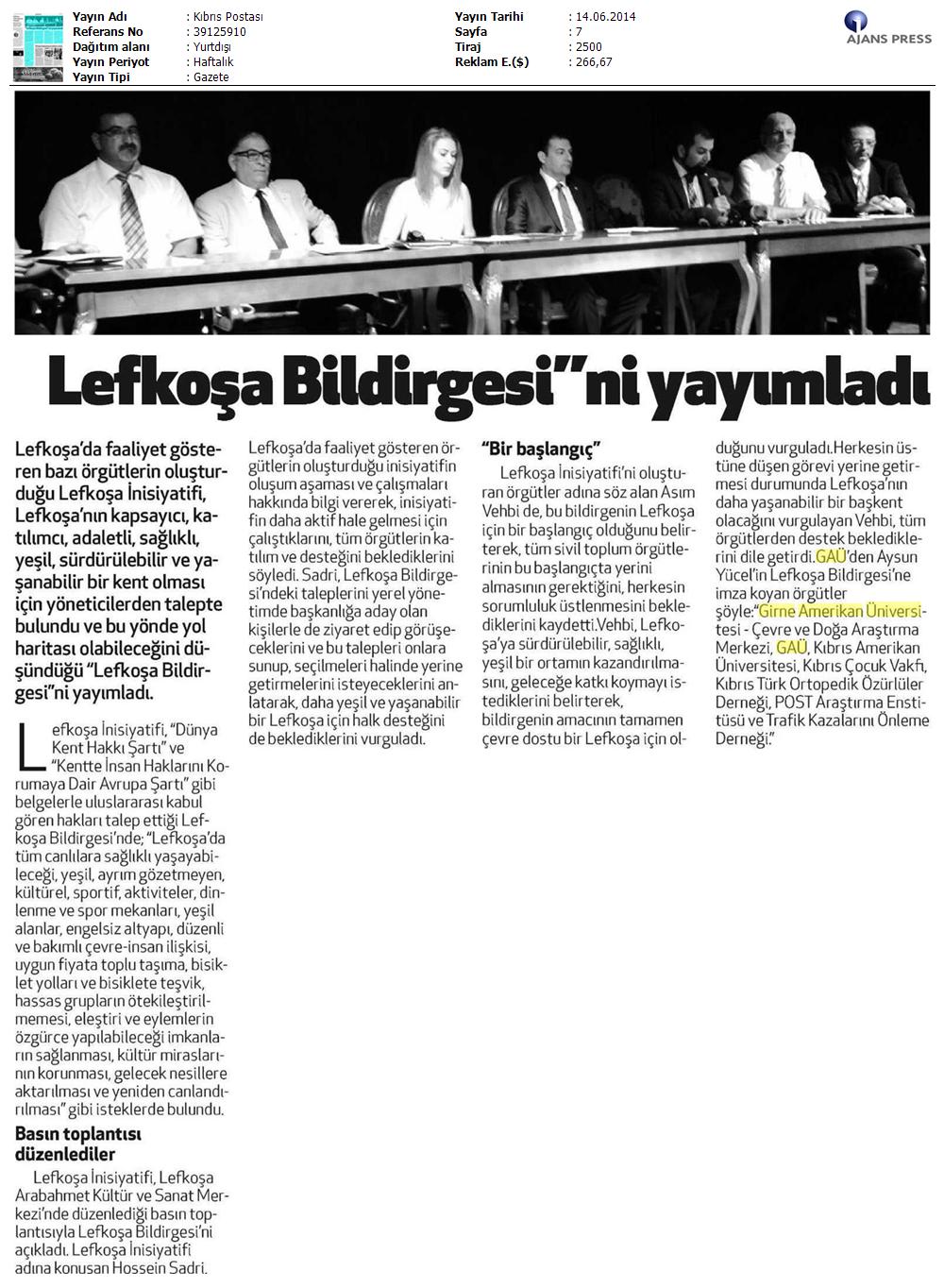Lefkoşa İnsiyatifi “Lefkoşa Bildirgesi”‘ni Yayınladı