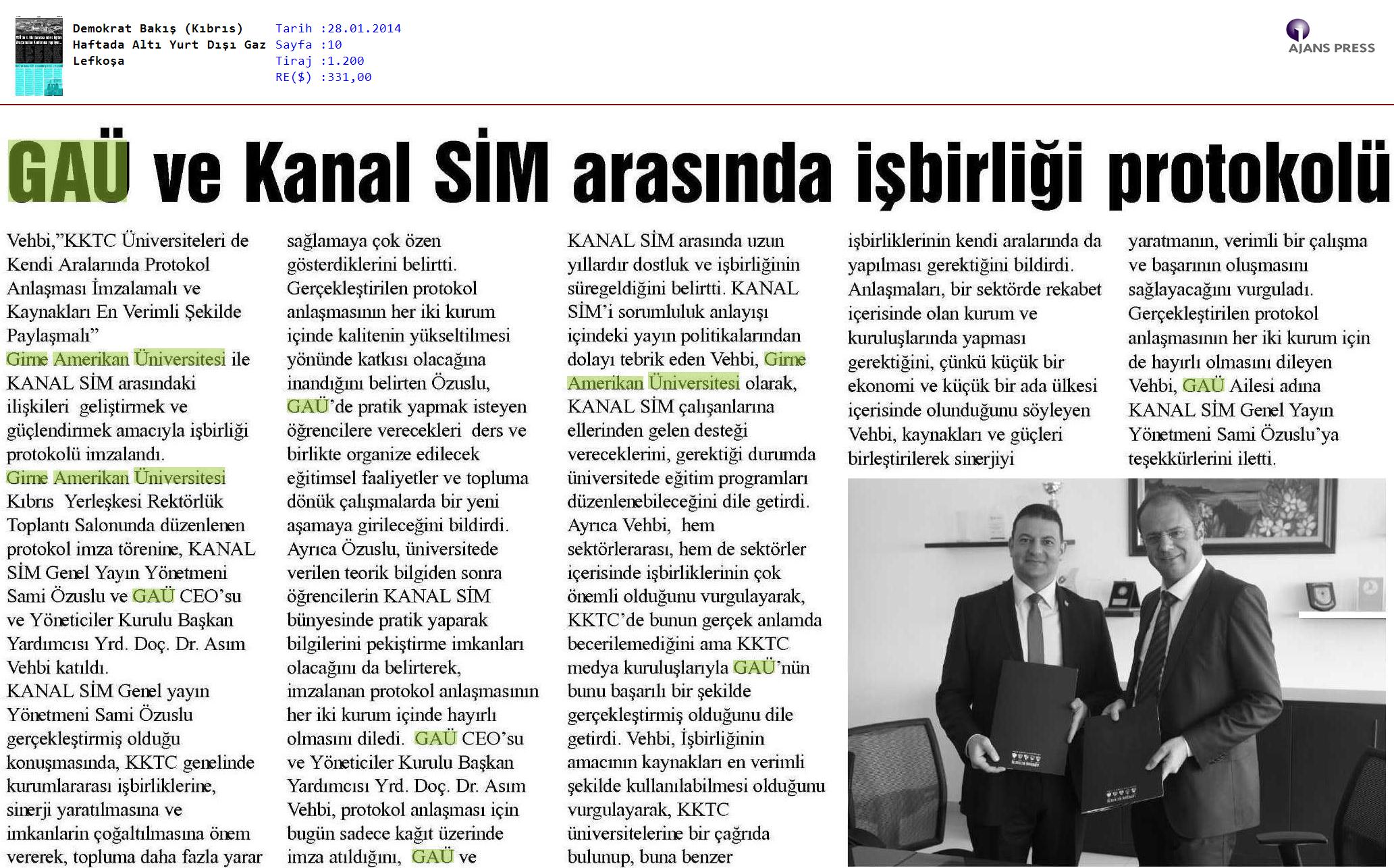 GAÜ ve Dış Basın Birliği Arasında İşbirliği Protokolü