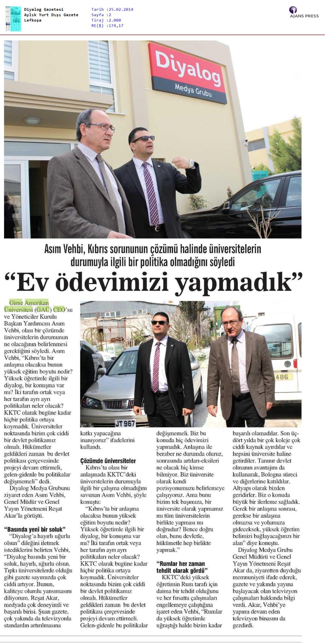 GAÜ Ceo’su Asım Vehbi Diyalog Medya Grubu’nu Ziyaret Etti