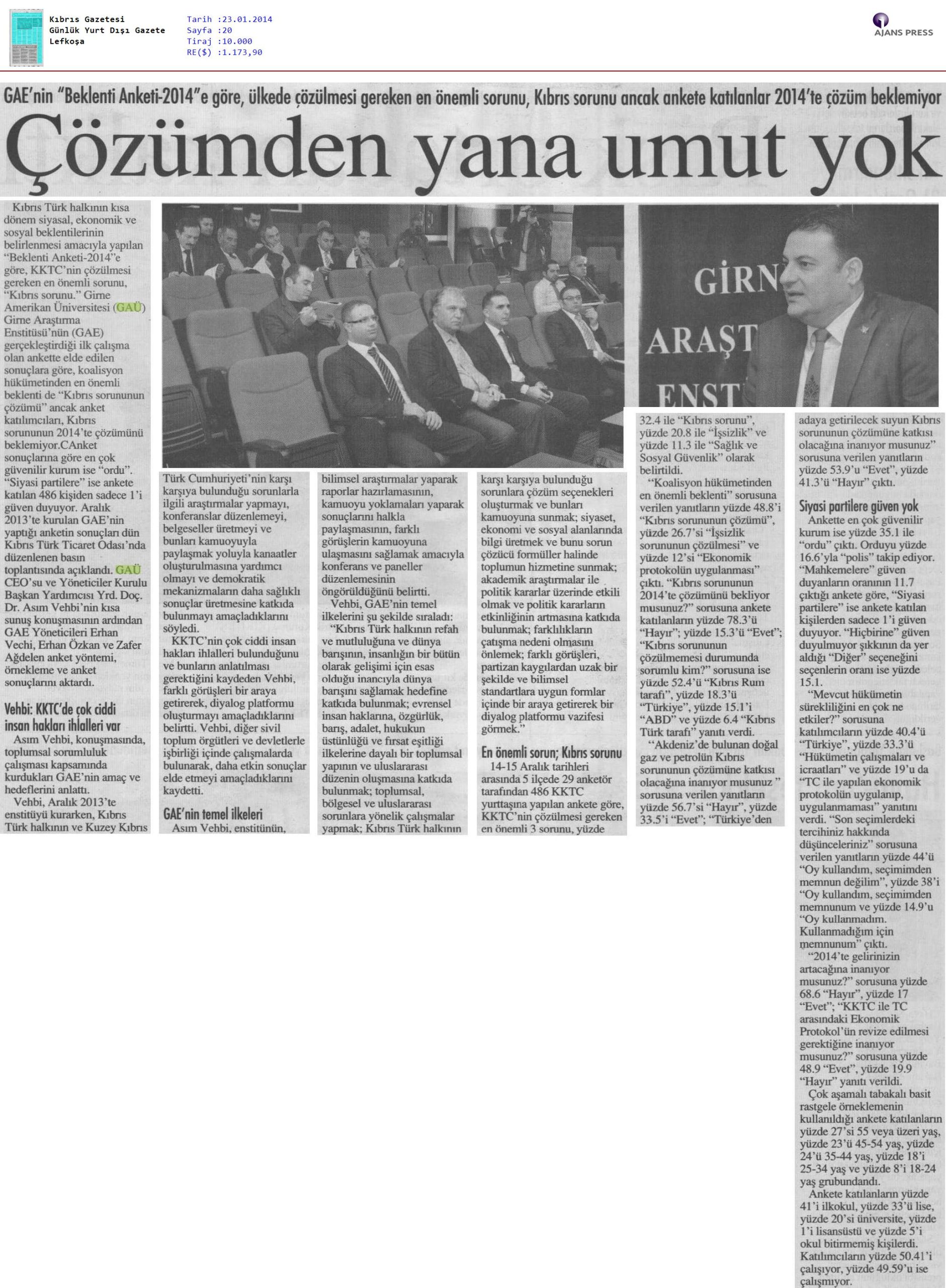 GAE 2014 Beklenti Anketini Kamuoyu ile Paylaştı