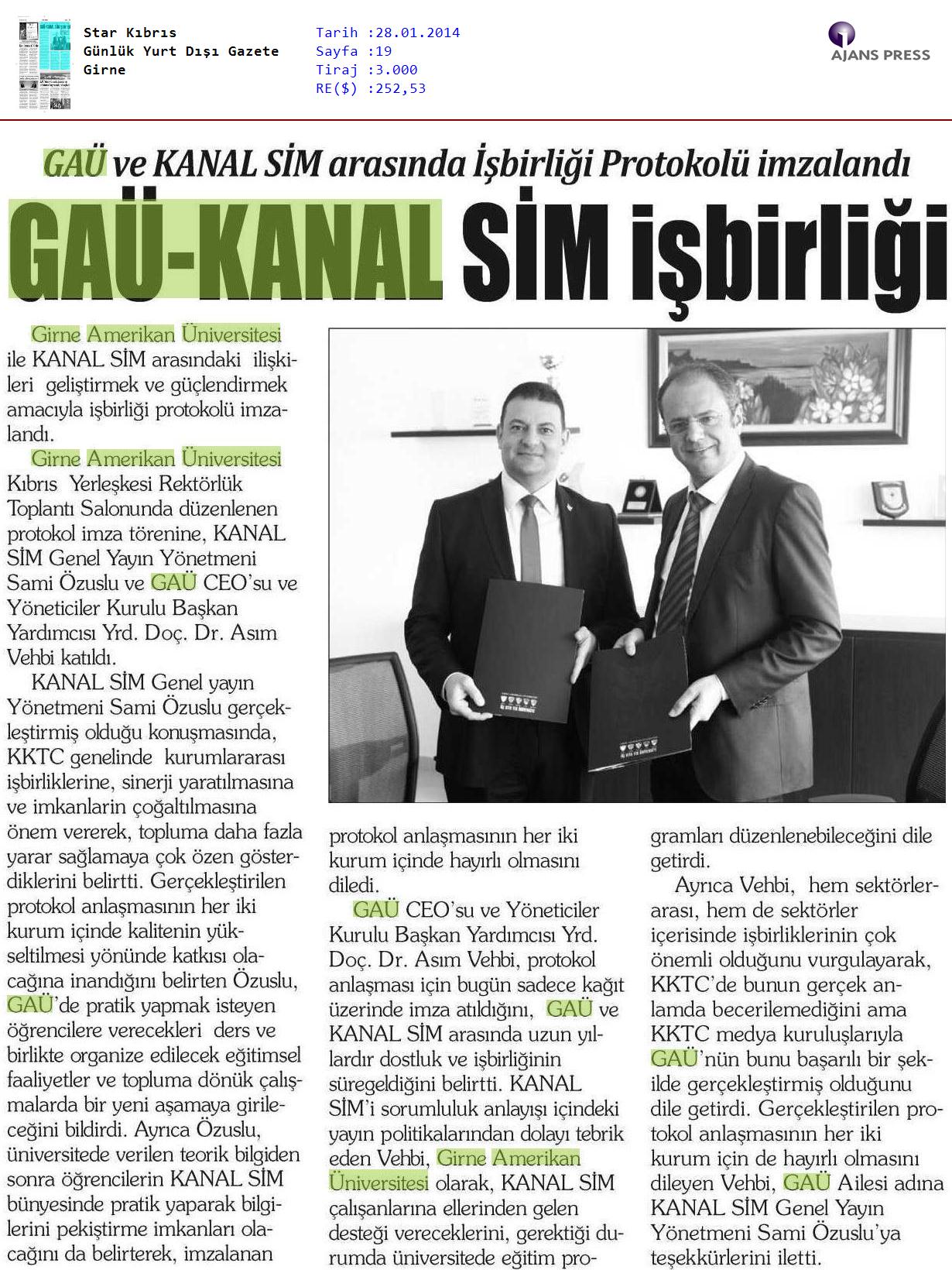 GAÜ İle Kanal Sim Arasında İşbirliği