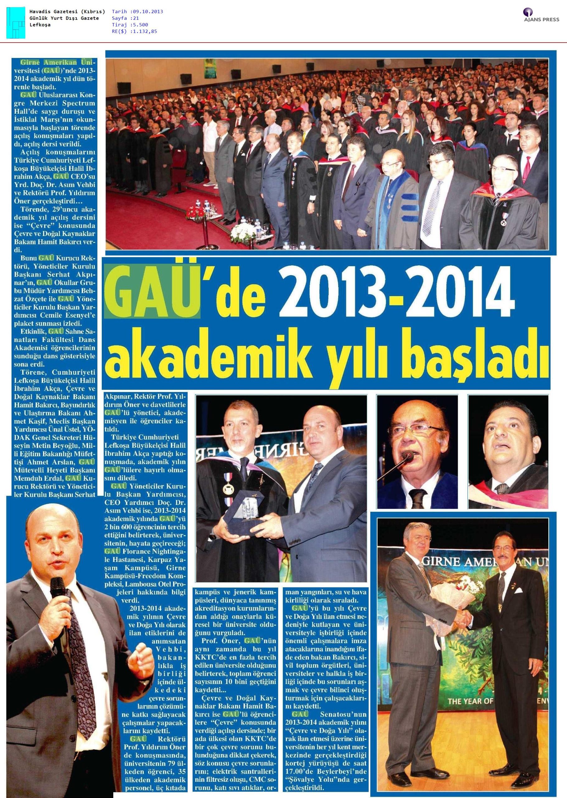 GAÜ’de 2013-2014 Akademik Yılı Başladı