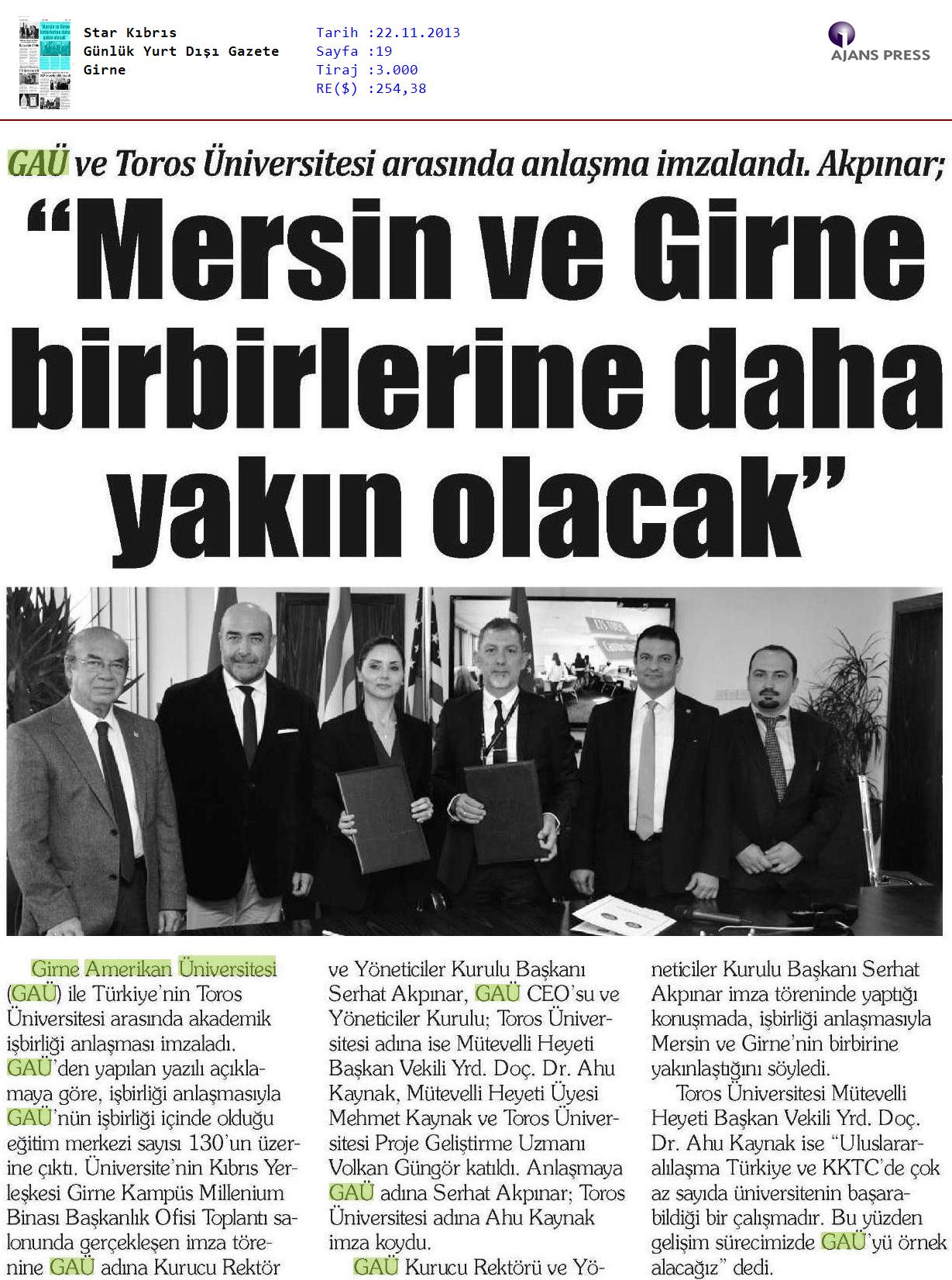 Toros Üniversitesi ile Akademik İşbirliği