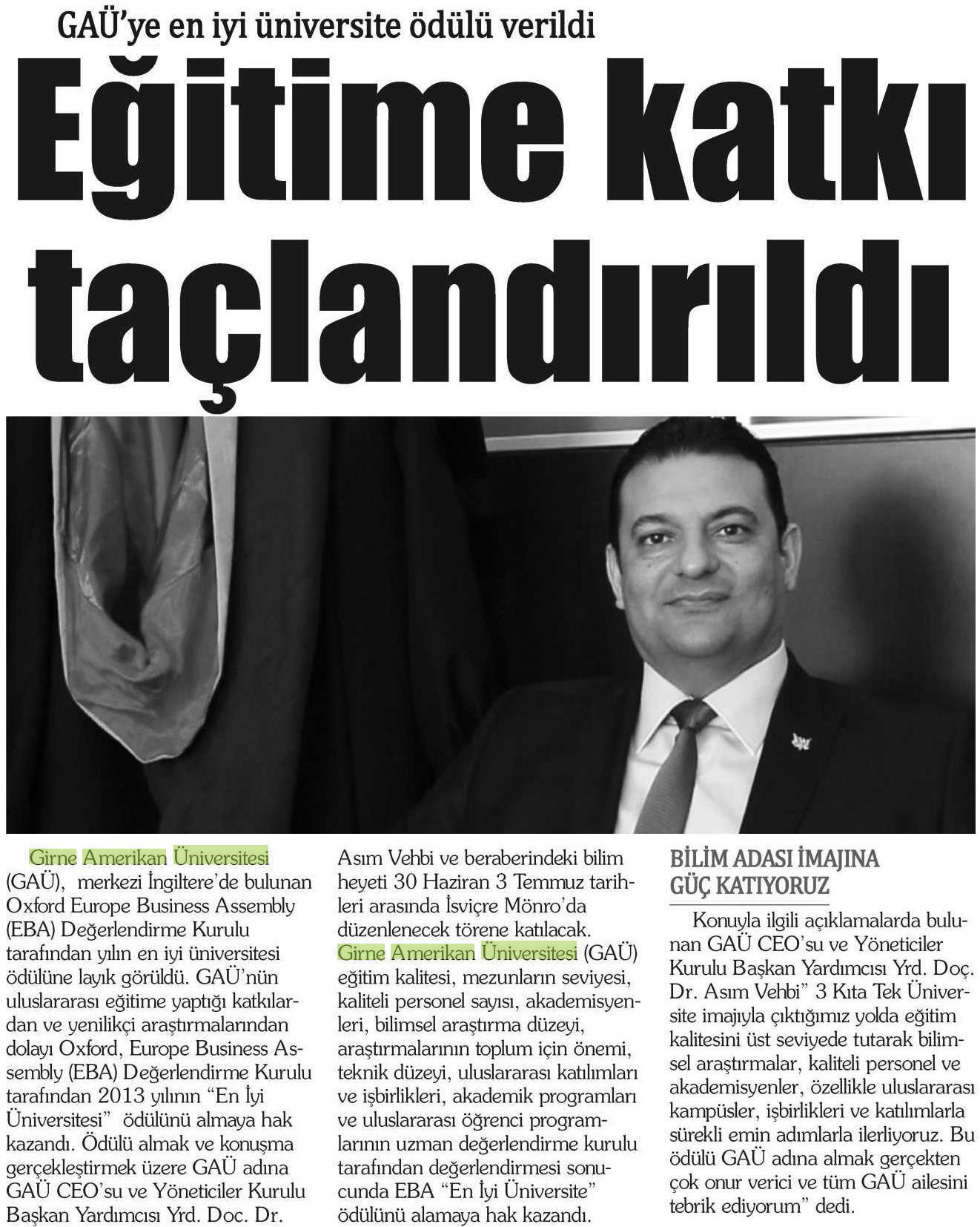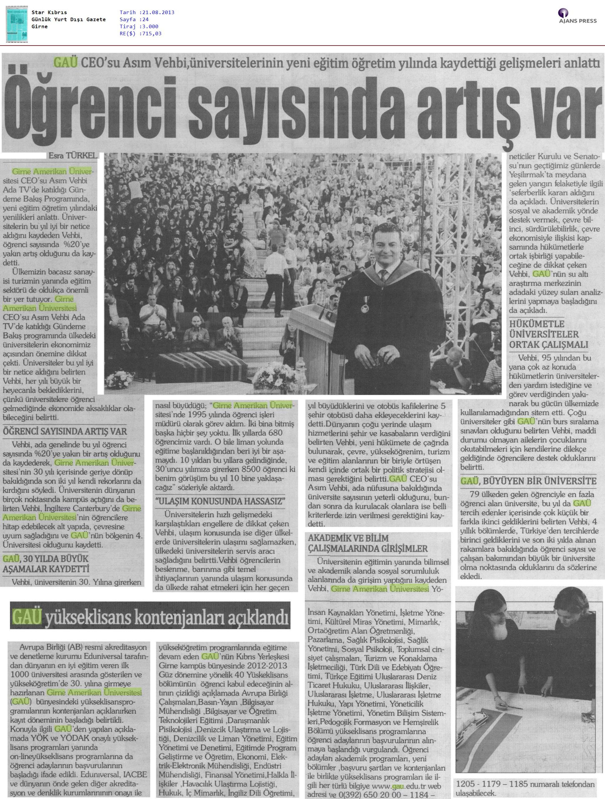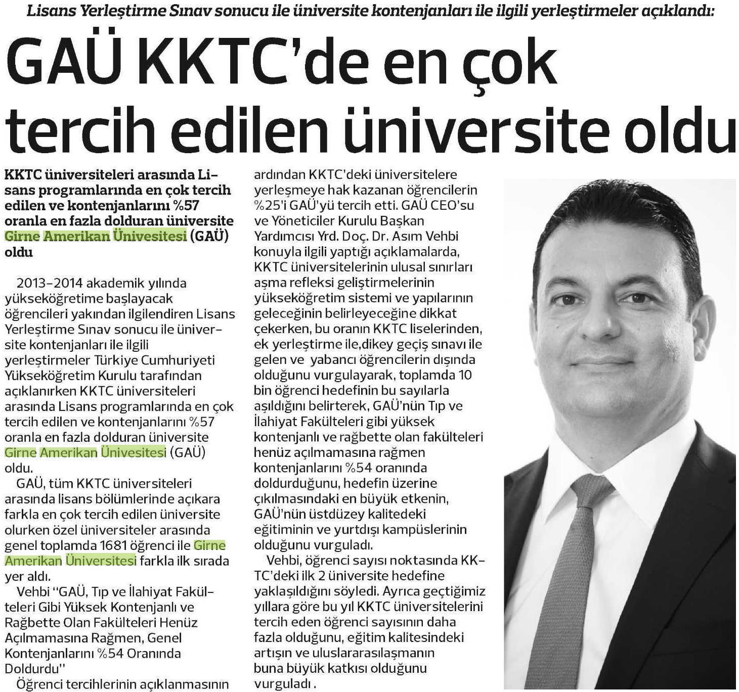 GAÜ CEO’su ve Yöneticiler Kurulu Başkan Yardımcısı Yrd. Doç. Dr. Asım Vehbi, 2013-2014 Akademik Yılı Lisans Yerleştirme Sonuçlarını Değerlendirdi