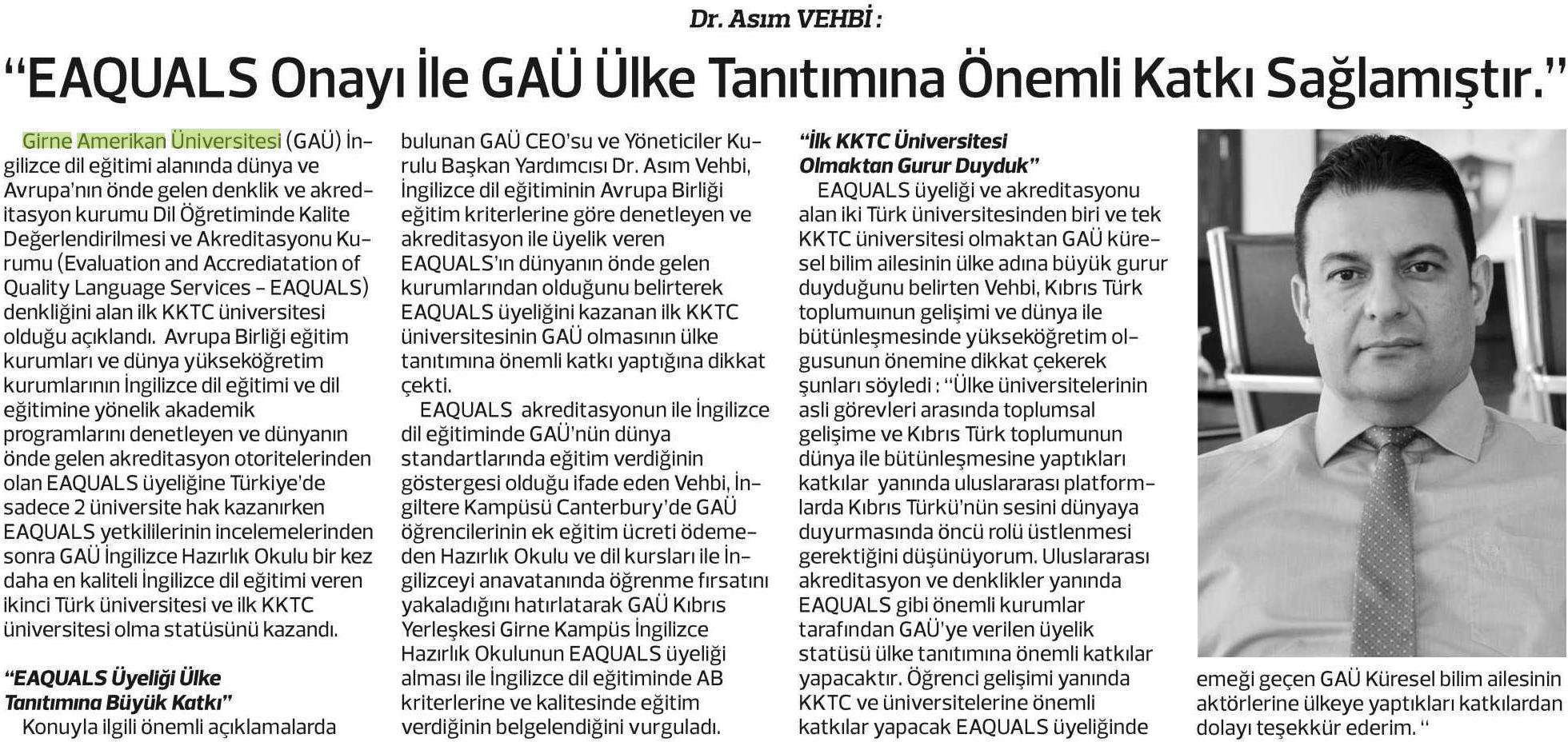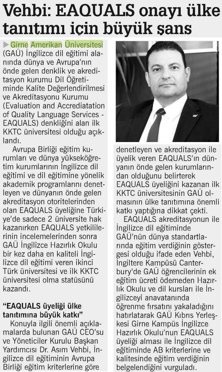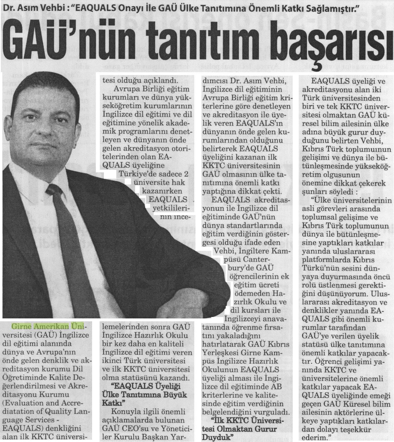Dr. Vehbi: EAQUALS Denkli ile Tanıtıma Büyük Katkı Sağlanmıştır.