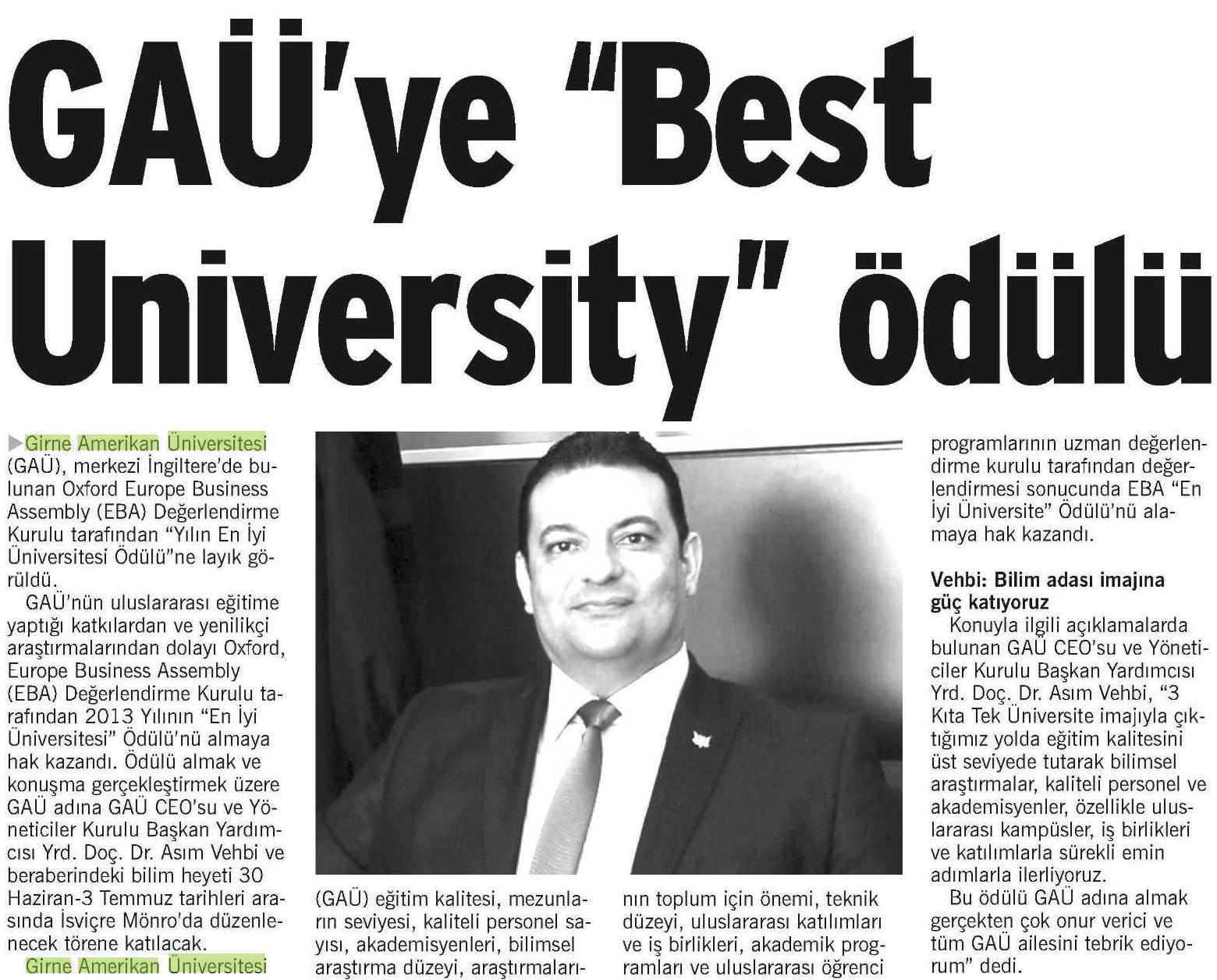 GAÜ CEO’su ve Yöneticiler Kurulu Başkan Yardımcısı Yrd. Doç. Dr. Asım Vehbi İsviçre’deki EBA Ödül Törenine Katıldı