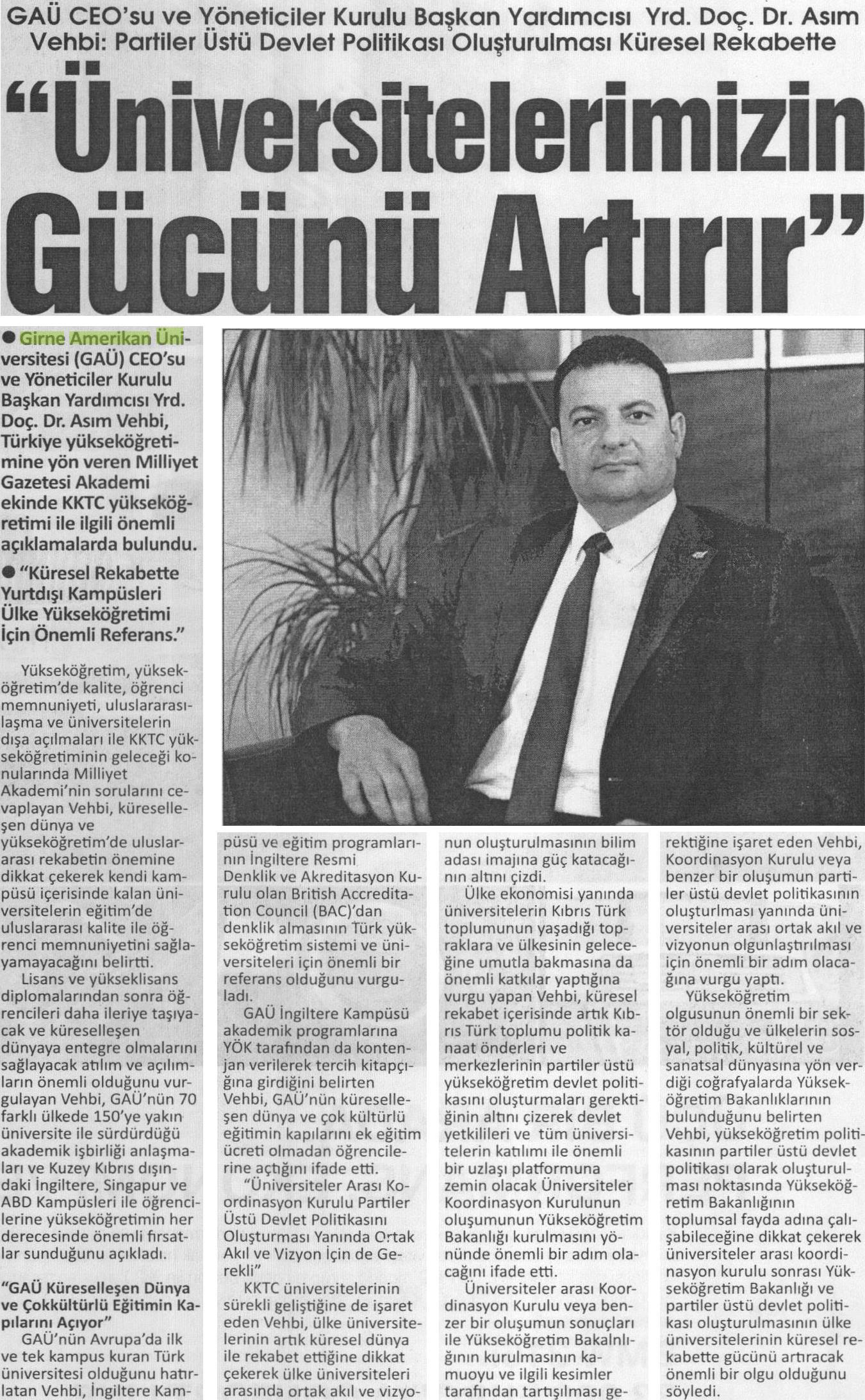 GAÜ CEO’su ve Yöneticiler Kurulu Başkan Yardımcısı Dr. Vehbi Yeni Akademik Yılı Değerlendirdi