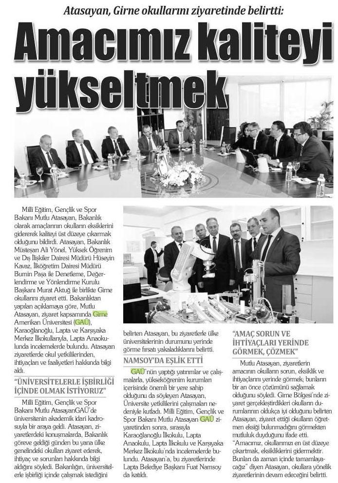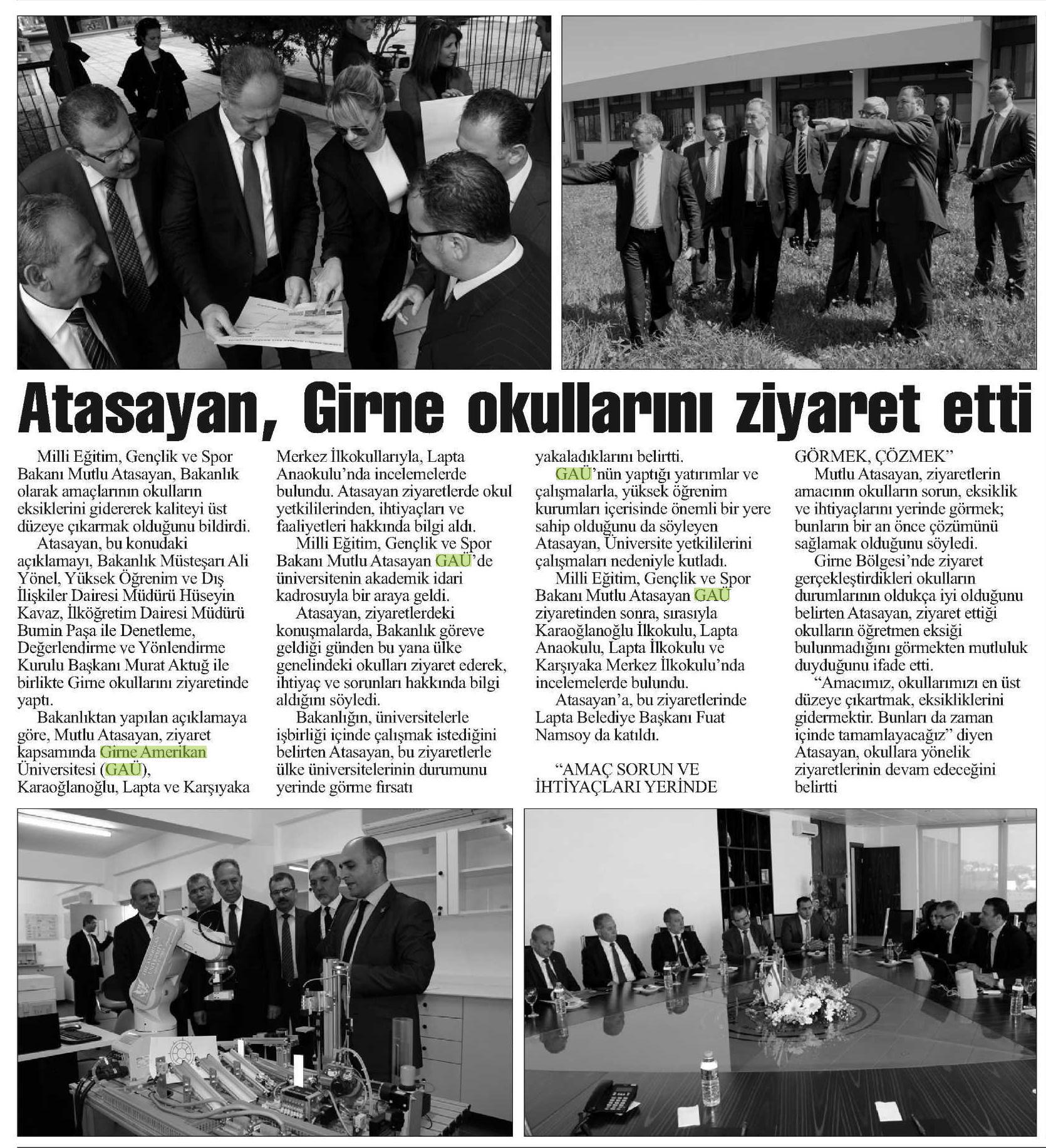 KKTC Milli Eğitim Gençlik ve Spor Bakanı Mutlu Atasayan GAÜ’yü Ziyaret Etti