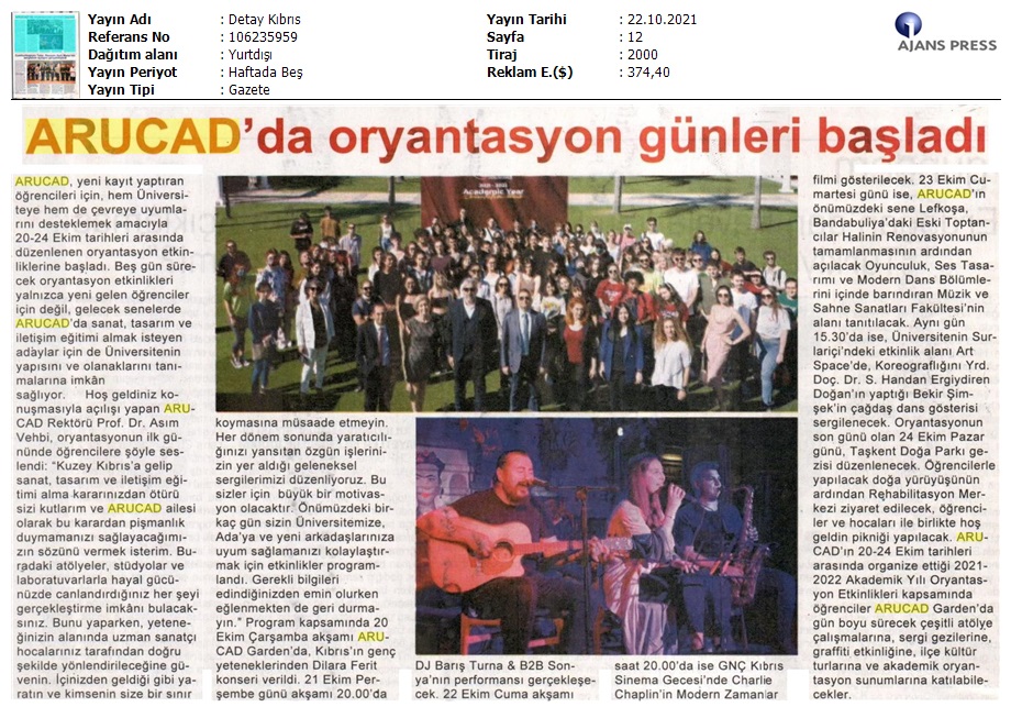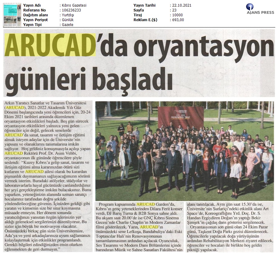 ARUCAD’da Oryantasyon Günleri Başladı