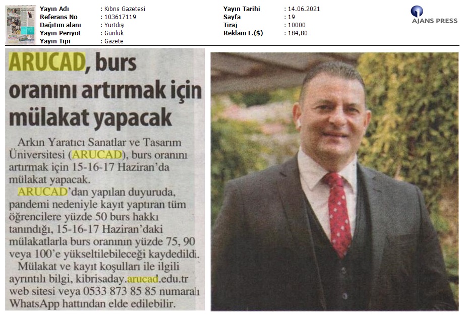 ARUCAD’da Burs Mülakatı 15-16-17 Haziran