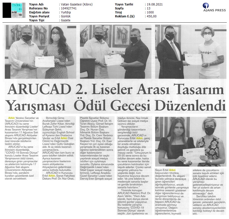 ARUCAD 2. Liseler Arası Tasarım Yarışması’nın Ödül Gecesi Gerçekleştirildi