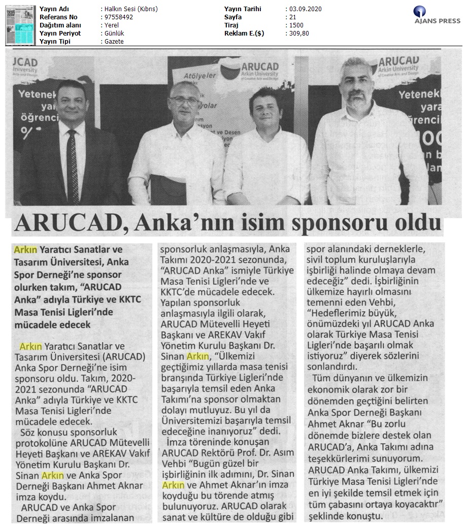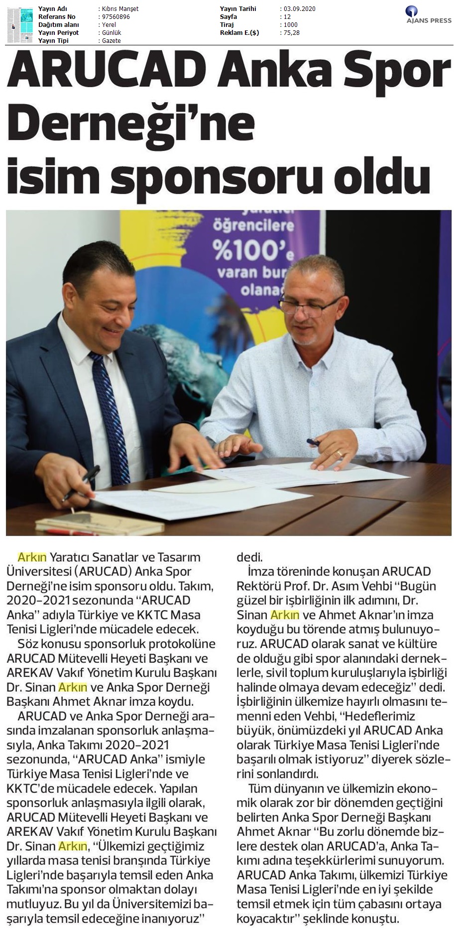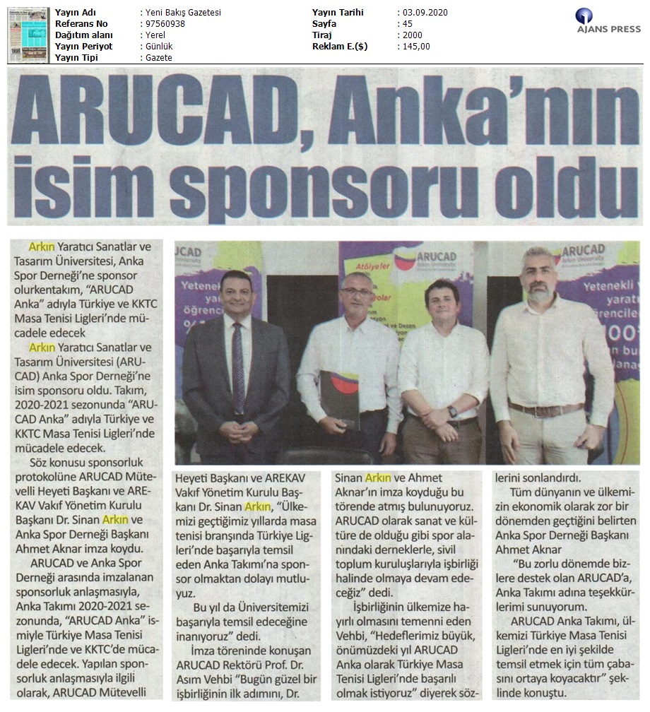 ARUCAD, Anka’nın İsim Sponsoru Oldu
