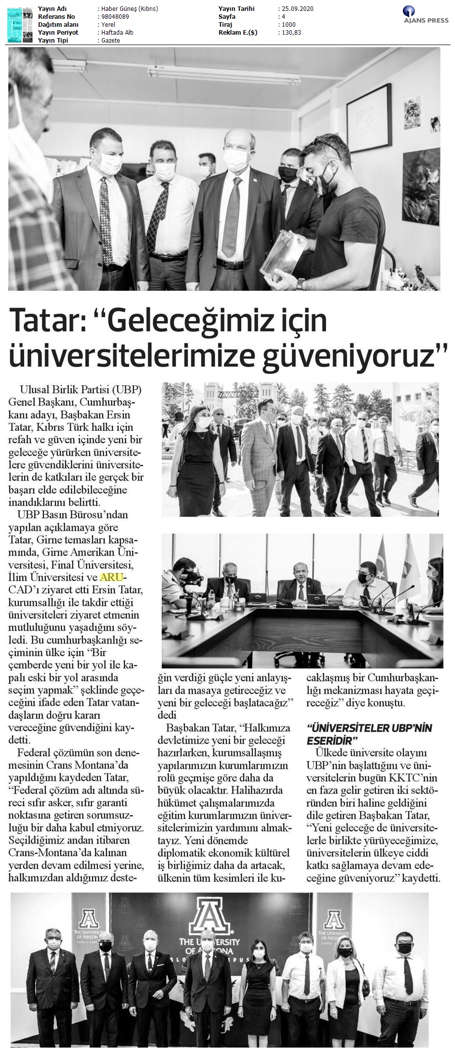 Başbakan Ersin Tatar ARUCAD’ı Ziyaret Etti