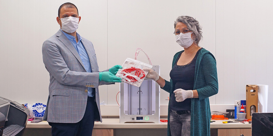 Arkın Yaratıcı Sanatlar ve Tasarım Üniversitesi’nin (ARUCAD) kendi tasarımı olan 3 boyutlu yüz koruyucu siperliklerin ilk üretimi, Girne Belediyesi çalışanlarına…